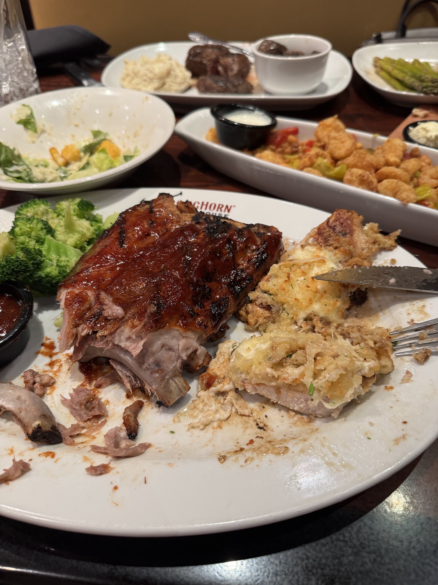 Read moreWent in today for Mother’s Day with my husband and our kids hoping to enjoy my Mother’s Day here with a good meal since losing my own mom and having not celebrated in years. The lady at the front desk was friendly, but our server named Madelynn gave us a very poor experience. First issue is we were rushed through taking our order and given an unfriendly attitude. The extras I asked for on food items were forgotten. I’m sure it’s because she rushed though our order smh. Had to ask for things that were automatically supposed to be given like straws for our drinks. She at no point ever offered refills the time we were there. So at some point we decided it was time to go after not enjoying our experience and our toddler getting restless. I asked if we could have boxes to go and the bill please. She changed her attitude to a more lively one then as if she was excited I had asked for boxes so she could get us out. We also watched her interact in a more inviting manner with her other tables that were Caucasian. I’m not sure if color is the reason for her unfriendly mannerisms, but hopefully to God not. She came back with the boxes I asked for and had the check book laid right inside our open to go box 🤮. She was also taking our plates off the table and grabbed my fresh salad I was going to box up and stacked it with the dirty plates. So I stopped her and told her that was my salad. She was about to hand it back after having it under filthy dishes and I told her I wanted a new salad. Now I had certain things removed from my salad from when I first ordered. She came back 1 minute later (too fast) with the salad + modifications and dressing on top even though I was about to box it smh. I concluded she took the old salad back only to act as if was a new one with modifications that quick with dressing on it. As if her being dry and rushed off by her wasn’t enough smh. I finally asked another server for the manager and he came to our table promptly. The manager who’s name I believe was Jeremy was very pleasant and understanding. He offered to give us an employee discount on our meal. He even acknowledged me for Mother’s Day which was kind because while sitting at the table with our kids the whole time our server never did. I hope Madelynn can get training on customer service and cleanliness because clearly she doesn’t care. But there’s no training for just being a good person and being kind as that should come naturally. I’ll be returning to Long Horn as I’ve been a customer for many years, but not to this...