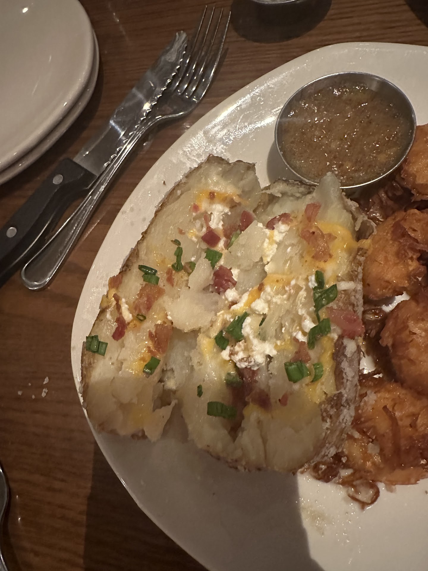 Read moreMonday night 6:00 reservations. Family of 10 celebrating 21st birthday of nephew Service was performed perfunctorily. We started with drinks + appetizers Bloomin Onion was burned, rare Asian tuna bites delicious but sliced very thinly the sauce was perfect wings were small but tasty Caesar salad was delicious, though the size of a dinner salad. The other salads were also very large Two in our party ordered the steak and unlimited shrimp. Steak was hard-grilled, but inside was as requested and tasty. Each time the shrimp came out 2, they were more burned. Bread and butter 2 boards, one for each table, was brought out at the beginning when we sat down and then when our mains were brought out. The server dumped one container of butter all over one of the diners. All drinks and Waters were readily filled before we even realised we needed refills The drinks were well mixed, beautifully garnished. and delicious, not overly strong with alcohol just right. The manager came to the table to ask if everything was okay and thankedus for coming in. The words were okay but after he walked away we kind of looked at each other it felt fake and creepy. We are a mixed aged group from 21 through 70s. We are generally a pleasant family that dines.out together regularly. Most of us have worked within the service industry, so we notice pretty much everything. There was definitely a lack of connection with the server a couple of times His comments felt almost rude. I guess it was a Monday, I guess you didn't really want to be there...