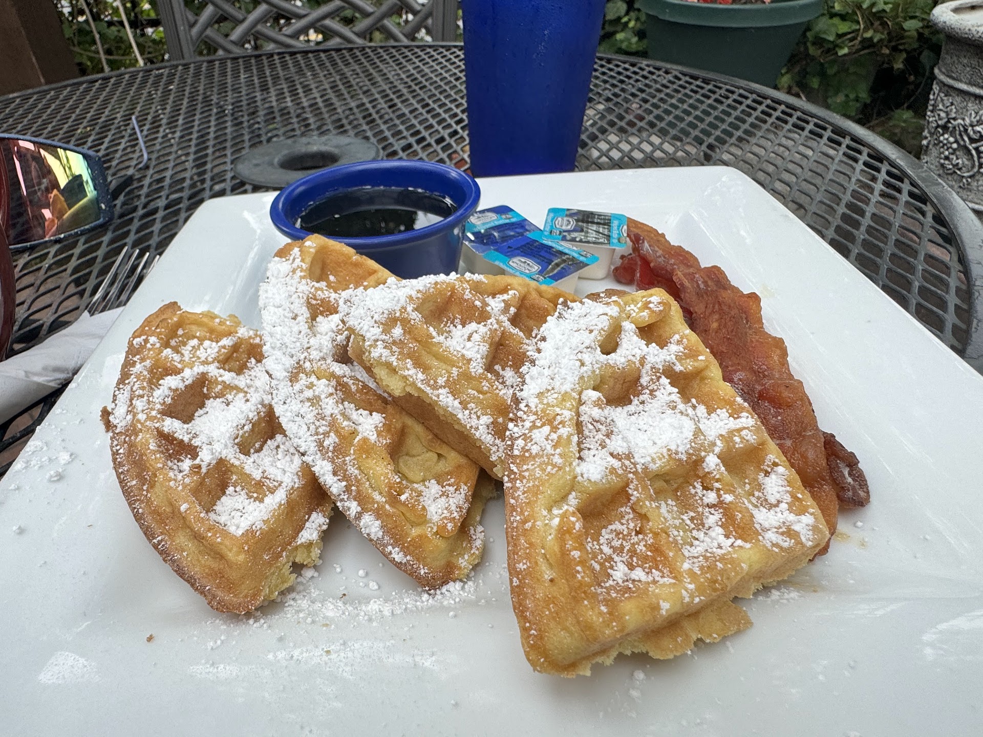 Read moreI have held off writing this review because we’ve been hopeful things would improve. Unfortunately they haven’t. After 5 years, today was our last visit. The waffle I had was ice cold. There is no way it was freshly made as the menu states. Butter would not melt on it. It had the taste of being in the refrigerator with other food. It was terrible. The fruit cup consisted of grapes and blueberries with two orange slices.