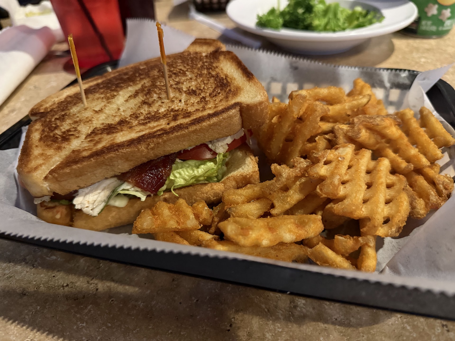 Visited last night with some friends and everyone's food was AMAZING. Fries were on point, crispy, and hot. I had the Frisco Melt and it was very good. Wife had the Tap House salad with chicken and it was HUGE and delicious. Friend had the ribeye and there was a giant pool of juice/butter on top and seasoned well.