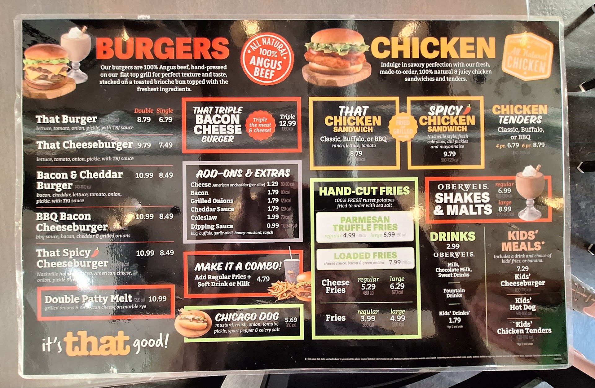 Read moreI walked into the Oberweis store and you can order from 3 restaurants inside at one counter 1)Oberweis Ice Cream Dairy & Store 2)Woodgrain Pizza 3)That Burger Joint. I did a takeout order The food was hot and flavorful and quickly made. I ordered 2 double bacon cheddar burgers for the wife and I with our favorite condiments along with 2 loaded fries which include green onions, bacon, sharp cheddar cheese sauce. Next time I'll get only one order and split it the serving container size was freakin huge you could've made a meal with just the loaded fries and and a tasty beverage or shake. We get Oberweis Dairy delivered every Monday so if they are out of something you can pick up most items in the store. My first time there I ordered 2 Woodgrain pizzas along with 4 cartons of random flavored ice cream, 2 regular chocolate chip cookie ice cream sandwiches, 2 chocolate chip ice cream sandwiches with sprinkles, 1pk bacon, 1 dozen pk of eggs, 1gal of milk in a glass bottle Its...