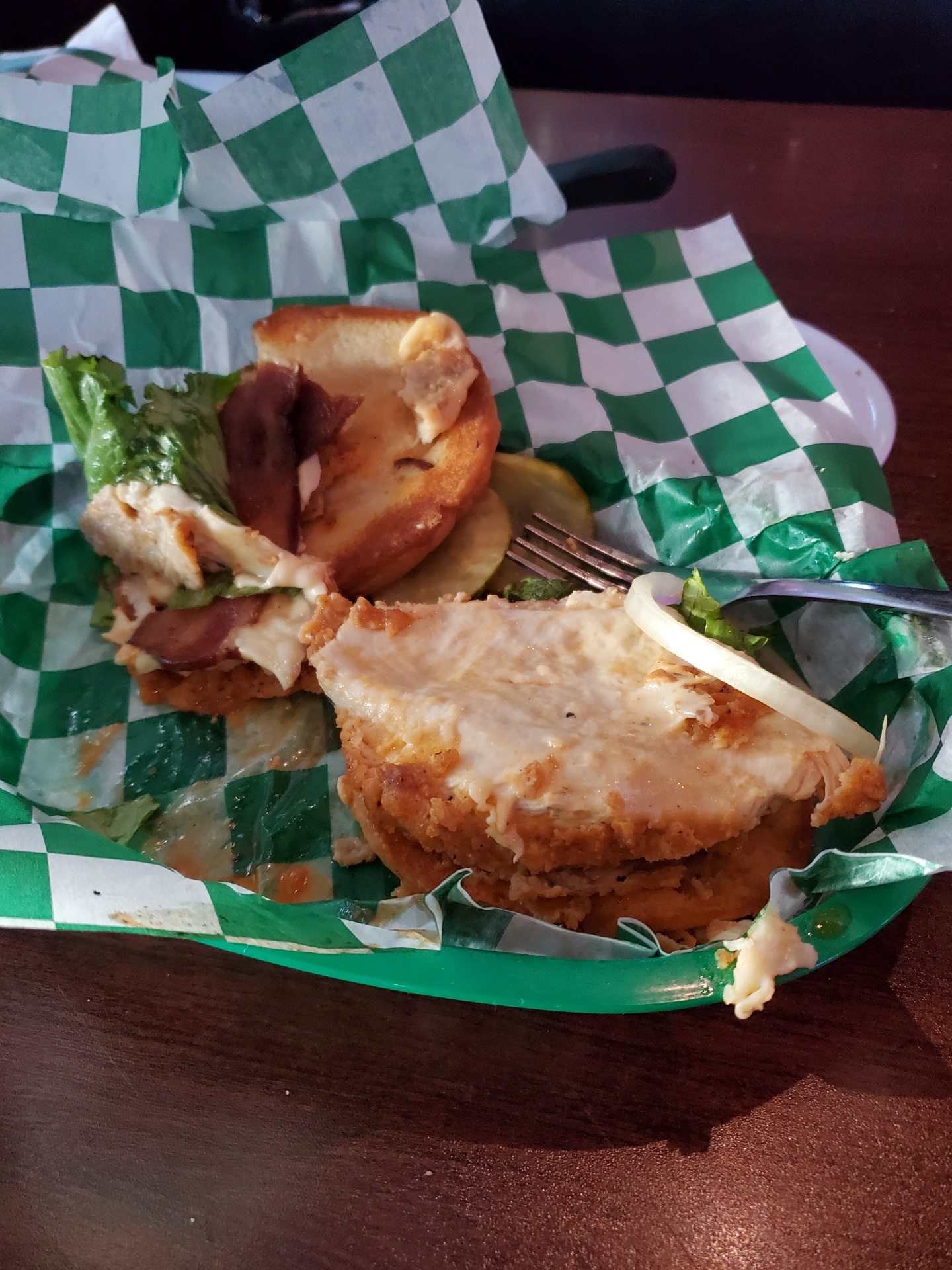 The pretzels are fried and served with Guinness beer cheese. I don't like drinking Guinness, but the dish was delicious and I contemplated licking the cheese cup - ultimately, my manners kicked in and I did not. However, the Pat-chick sandwich had me licking my fingers. It wasn't encrusted in cheese like the menu said it would be, but it was grilled to perfection and topped with a flavorful parmesan ranch sauce. I don't think I would want it encrusted with anything simply because it was so good as it was.