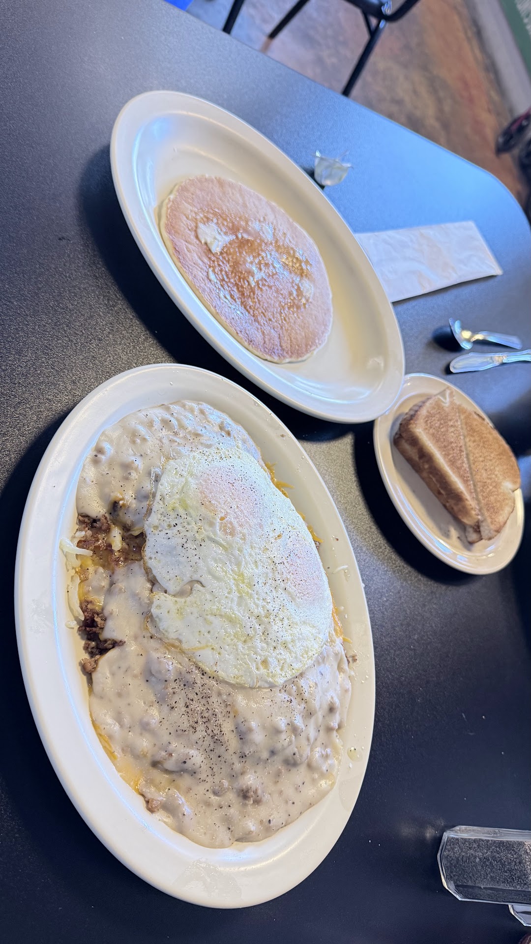 The food took about 17mins to arrive but it did not disappoint in flavor or portion size. I ordered the Hash brown skillet with eggs, sausage gravy, and pancake. I was highly impressed with the flavor of the skillet and pancakes.
