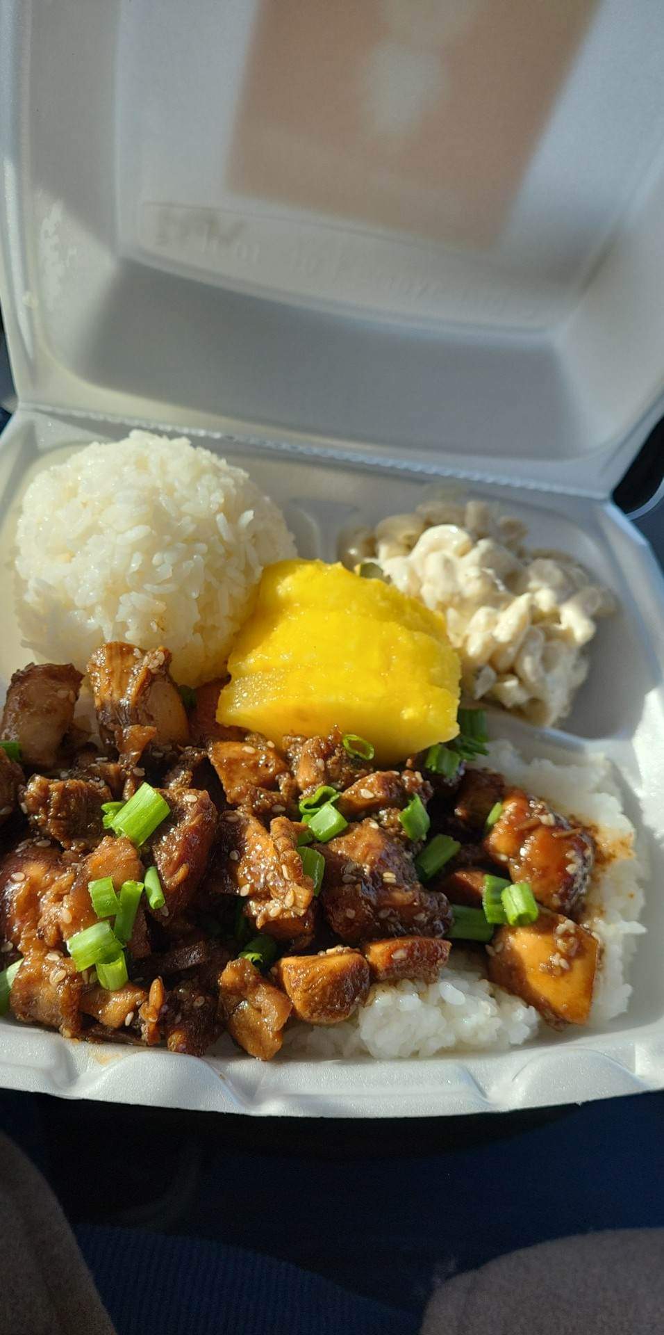 The Luau Pig is probably the best pulled pork in town. The mixed veggies were great...then... everything else. Maybe just call everything teriyaki chicken and ask to add a spice. It all tasted the same; it was over salted. Also, why offer rice when you pile an ounce of protein on two ounces of rice already. That's not very fair and misleading. I will say your rice is very good. The Mac was bland. The Spam thing was disgusting. Just call it seaweed and get it over with.