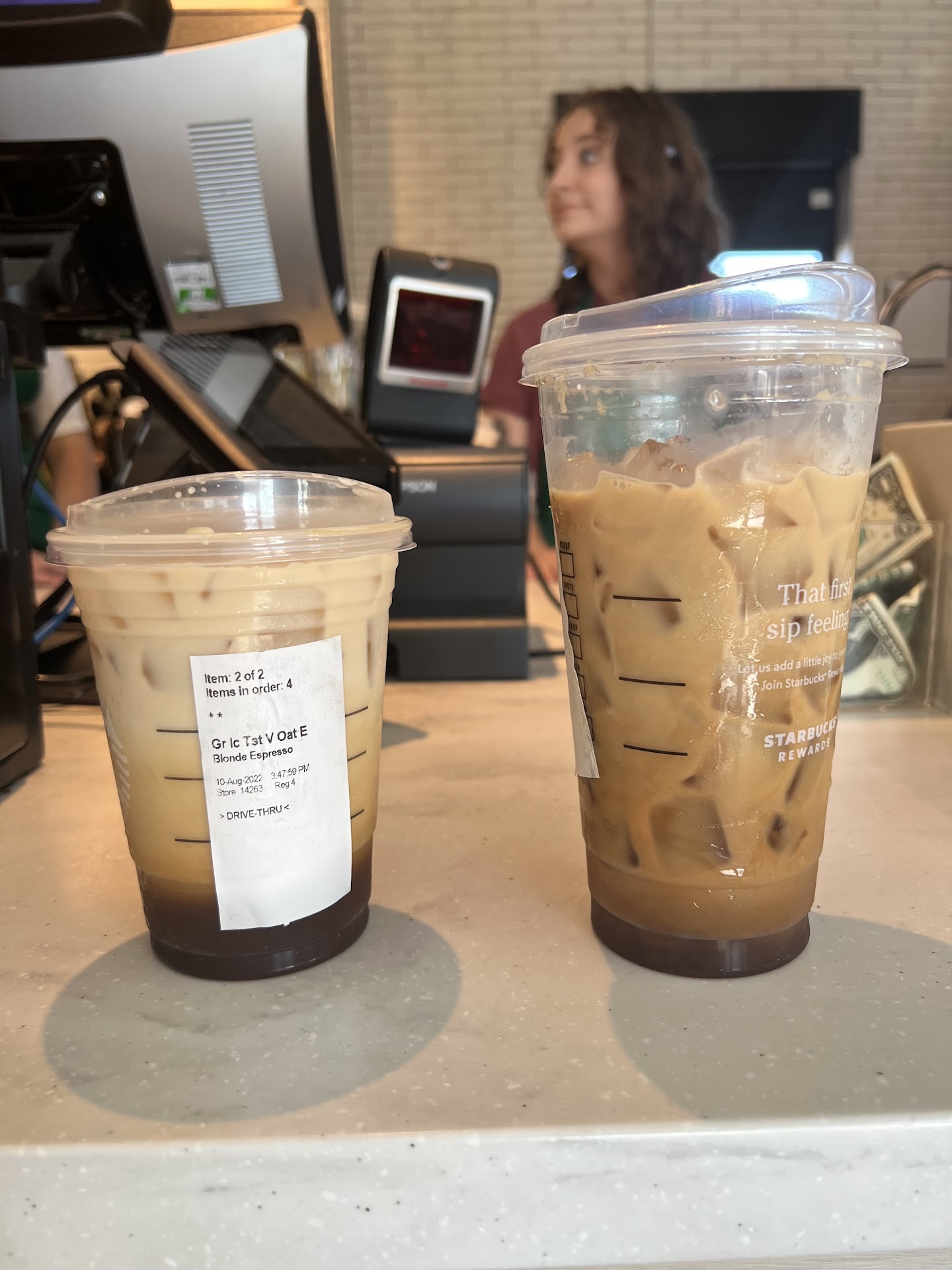 He gave it back through the window and I said thank you to which he didnāt say a single thing, he just turned around with a snarky little attitude like it was our fault that they canāt pay attention. I drove around to leave, and I was so bothered by my now milk with a tiny bit of espresso that I ended up going inside to have it made correctly, again.
