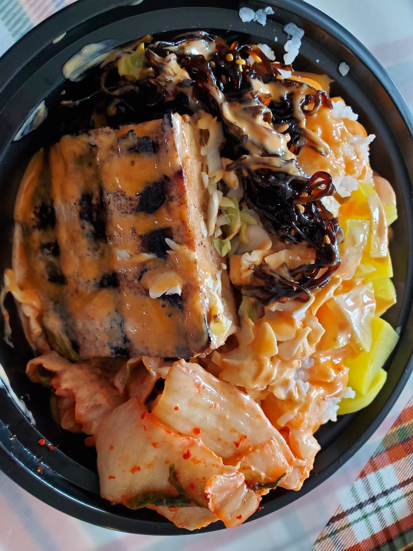 STEP 4: SAUCE We tried 3 different sauces (spicy mayo, barbecue, and yummy sauce). All three sauces were good. The flavors of a lot of the toppings would have made a tasty rice bowl without adding any sauces, so you may want to consider adding sauces if you have more bland selections (plain rice with carrots and cabbage), or being careful of adding sauces that combine too many flavors if you have more seasoned selections (like the seasoned rice with marinated steak, garlic and, seaweed). I could have skipped the sauce and still had a ton of flavors in my rice bowl.