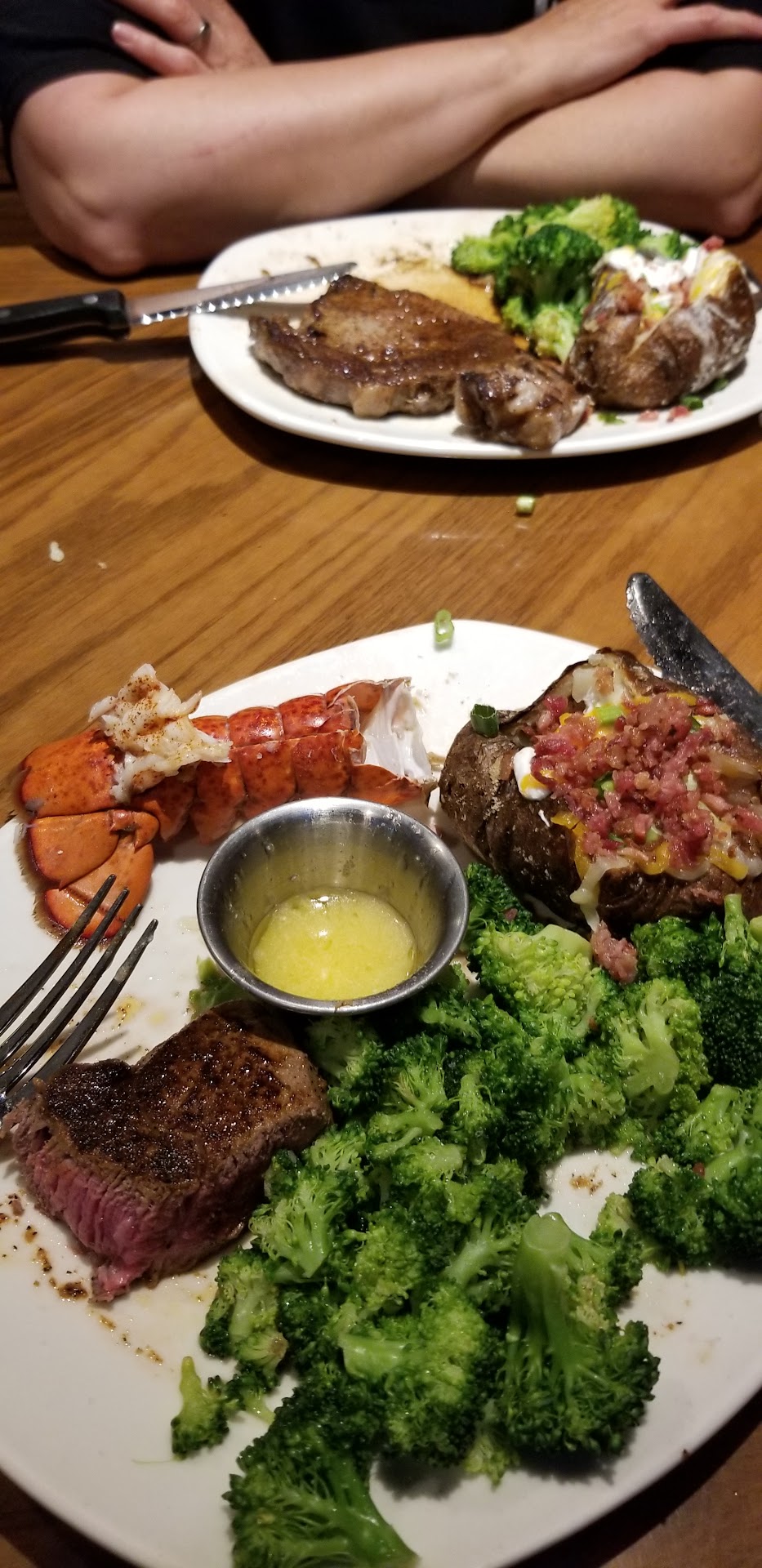 Read moreMonday night 6:00 reservations. Family of 10 celebrating 21st birthday of nephew Service was performed perfunctorily. We started with drinks + appetizers Bloomin Onion was burned, rare Asian tuna bites delicious but sliced very thinly the sauce was perfect wings were small but tasty Caesar salad was delicious, though the size of a dinner salad. The other salads were also very large Two in our party ordered the steak and unlimited shrimp. Steak was hard-grilled, but inside was as requested and tasty. Each time the shrimp came out 2, they were more burned. Bread and butter 2 boards, one for each table, was brought out at the beginning when we sat down and then when our mains were brought out. The server dumped one container of butter all over one of the diners. All drinks and Waters were readily filled before we even realised we needed refills The drinks were well mixed, beautifully garnished. and delicious, not overly strong with alcohol just right. The manager came to the table to ask if everything was okay and thankedus for coming in. The words were okay but after he walked away we kind of looked at each other it felt fake and creepy. We are a mixed aged group from 21 through 70s. We are generally a pleasant family that dines.out together regularly. Most of us have worked within the service industry, so we notice pretty much everything. There was definitely a lack of connection with the server a couple of times His comments felt almost rude. I guess it was a Monday, I guess you didn't really want to be there...