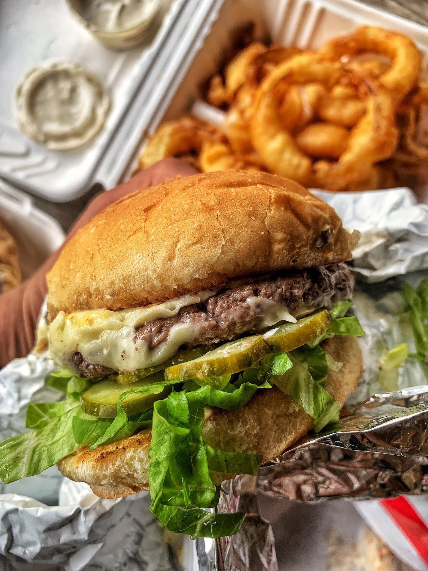Employees are super nice and chill, and work like a smooth oiled machine behind the counter. The vibe is friendly and welcoming. Did I mention the food is out of this world? Make sure you get some homemade ranch or garlic aoili to dip your fries or onion rings in - and bring a small...