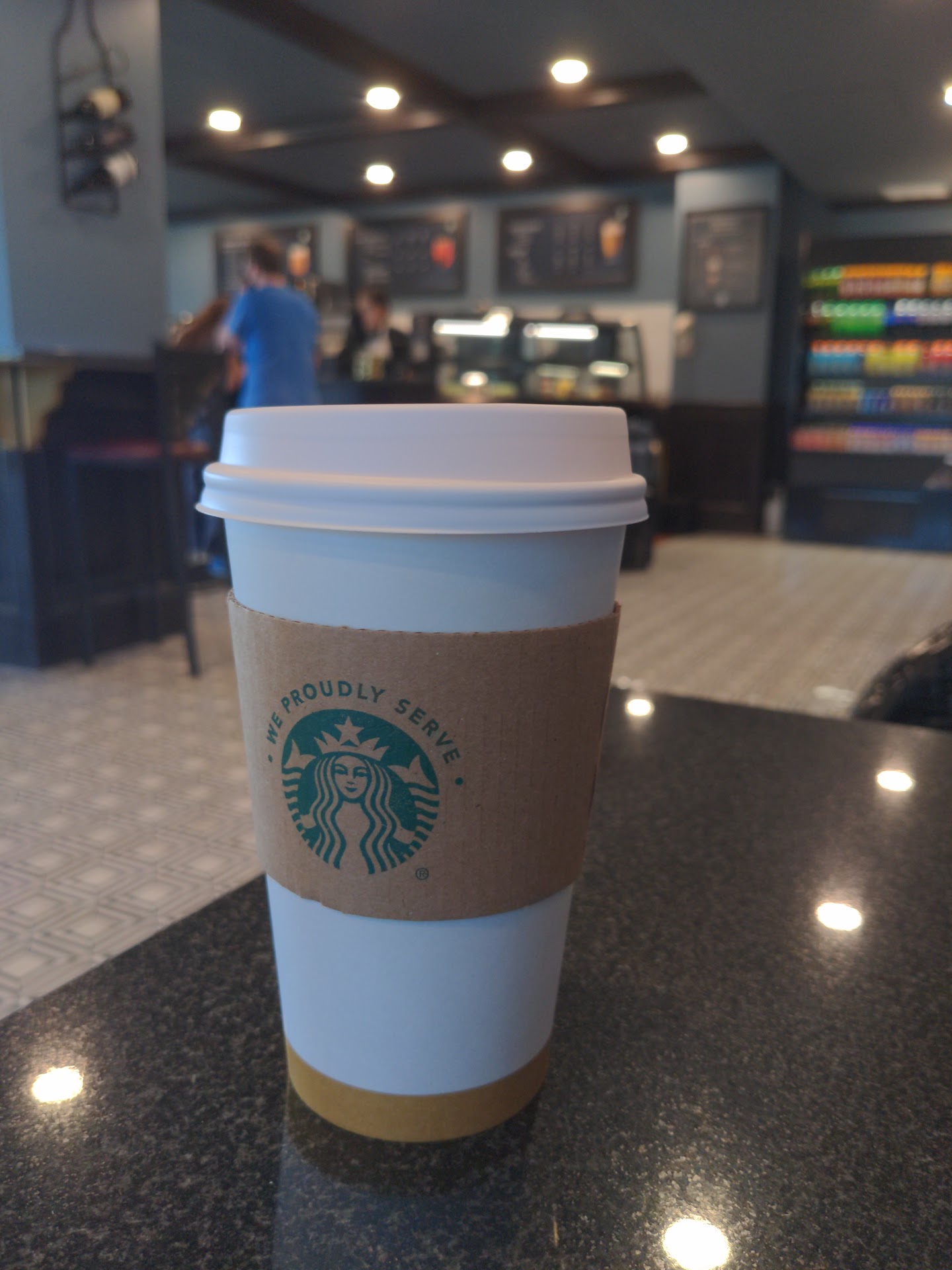 So this place has a nice vibe (to match the beautiful hotel grounds) and is very CLEAN...like other reviews this is for all intents & purposes a Starbucks. Yes they "proudly serve Starbucks" but they go well beyond that: they use Starbucks equipment, have Starbucks-named drinks and offerings and use their signage and logos. Calling itself something else is deceptive to anyone looking for a coffee shop other than Starbucks. Hence the...