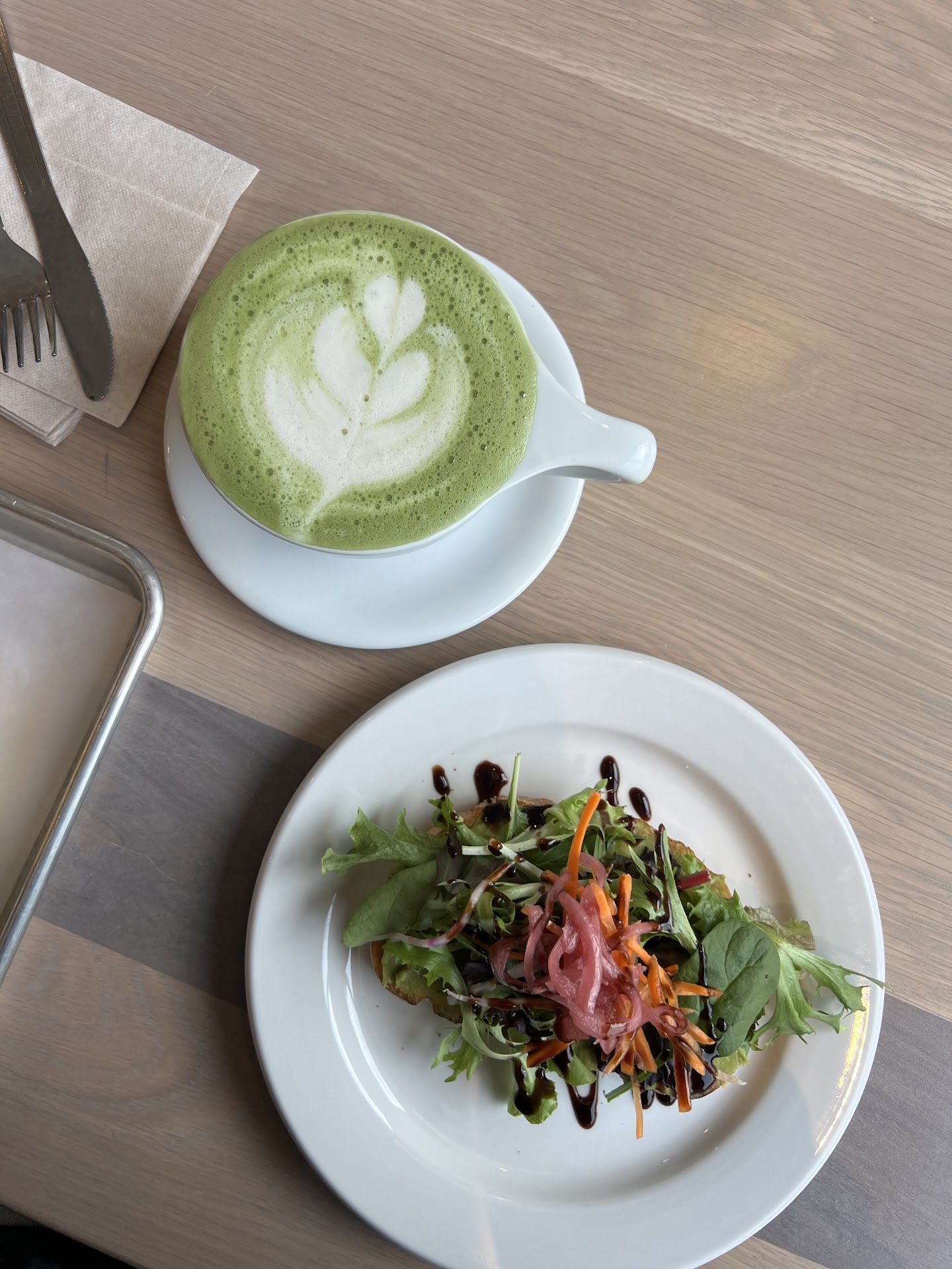 We were greeted immediately and given recommendations as we perused the menu, baked goods case, and grab-and-go cooler. I saw their seasonal menu included a blueberry basil house made syrup â a must try for me. I wanted my morning espresso though, so I was excited they were happy to make me a latte with that instead of the matcha (which I ended up trying the next day!); both drinks were delicious. Love how they use Intelligensia, a local coffee roaster.