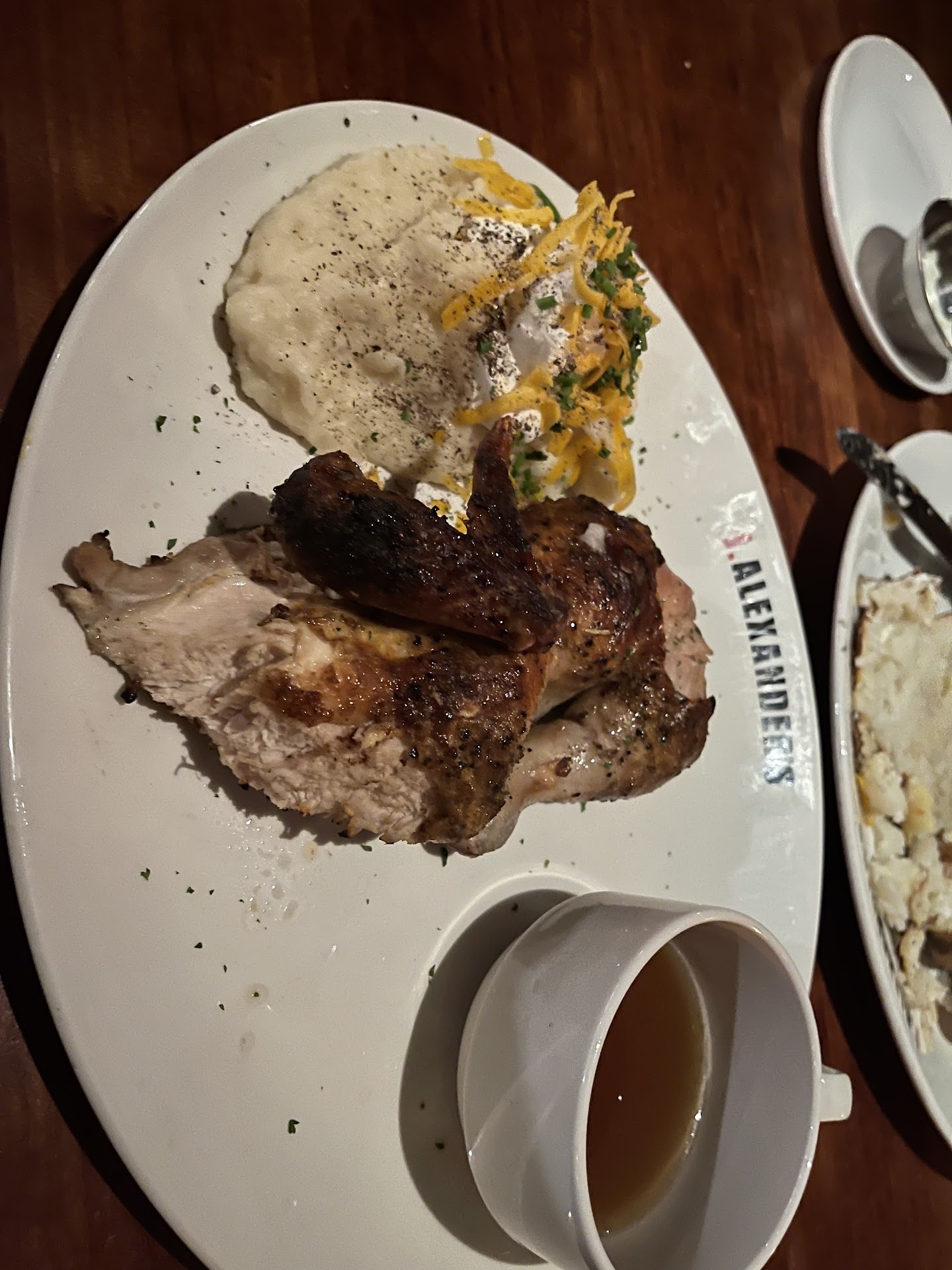 Given that J Alexander’s isn’t a Michelin star restaurant the food once had great quality until my visit on Nov 20,2022. My fiancé and I were out dining and still celebrating our anniversary. Upon arrival we we’re seated right away. We order calamari, roasted chicken, fish of the day & an old fashioned totaling $92.45. The calamari was great freshly prepared with a nice portion size, the old fashioned was good and so was the preparation of the fish of the day. Yet my chicken was cold after digging into it, compared to the sizzling fish on his plate. A manager was walking by and stopped to ask and I informed her. She apologized and removed the plate taking it to the counter and passing it back into the kitchen. Food service 101 NEVER accept food back over the counter to correct….. the dish or item must be made fresh. They warmed the chicken up via microwave and added a fresh serving of mashed potatoes to a clean plate. Given this world we live in and how we all have gone through COVID and everything else why did the manager think this was ok? All the while seeing this from our table, which was right at the front of the dining room looking into the kitchen and my fiancé saw it all. My plate was return by the manager standing at the window; by sliding it on the table from the corner and saying enjoy before walking away. Never once properly approaching the table correctly to again apologize for the matter. In that moment I was beyond heated as this never should occur. I examined the chicken confirming that it was indeed the same piece as the initial order ( due to how how I cut into it). So I now have reheated microwaved chicken, that’s dry which I hate because it creates a rubbery texture and smell & no utensils for the next 10-15 mins after the initial tall slender management walked past at least twice with no acknowledgment. My waiter comes and notices after serving his other tables, apologies and ask if anything else is needed and I informed him that the dish had grown cold again and I no longer wanted it. He apologized and took the matter to a new manager and she instantly apologized and went to remake freshly everything. Much appreciated, right? Nope because I get my fresh plate and there was a surprise in the mash potatoes. At that point there was nothing else I wanted from their kitchen. Dessert & champagne was given for our anniversary; with the bill! The bill was never an issue to pay, as I was more concern with tipping my waiter than I was for paying for a meal I couldn’t enjoy. I believe it’s safe to say that was my absolute last time dining there, a very disappointing experience from management &...