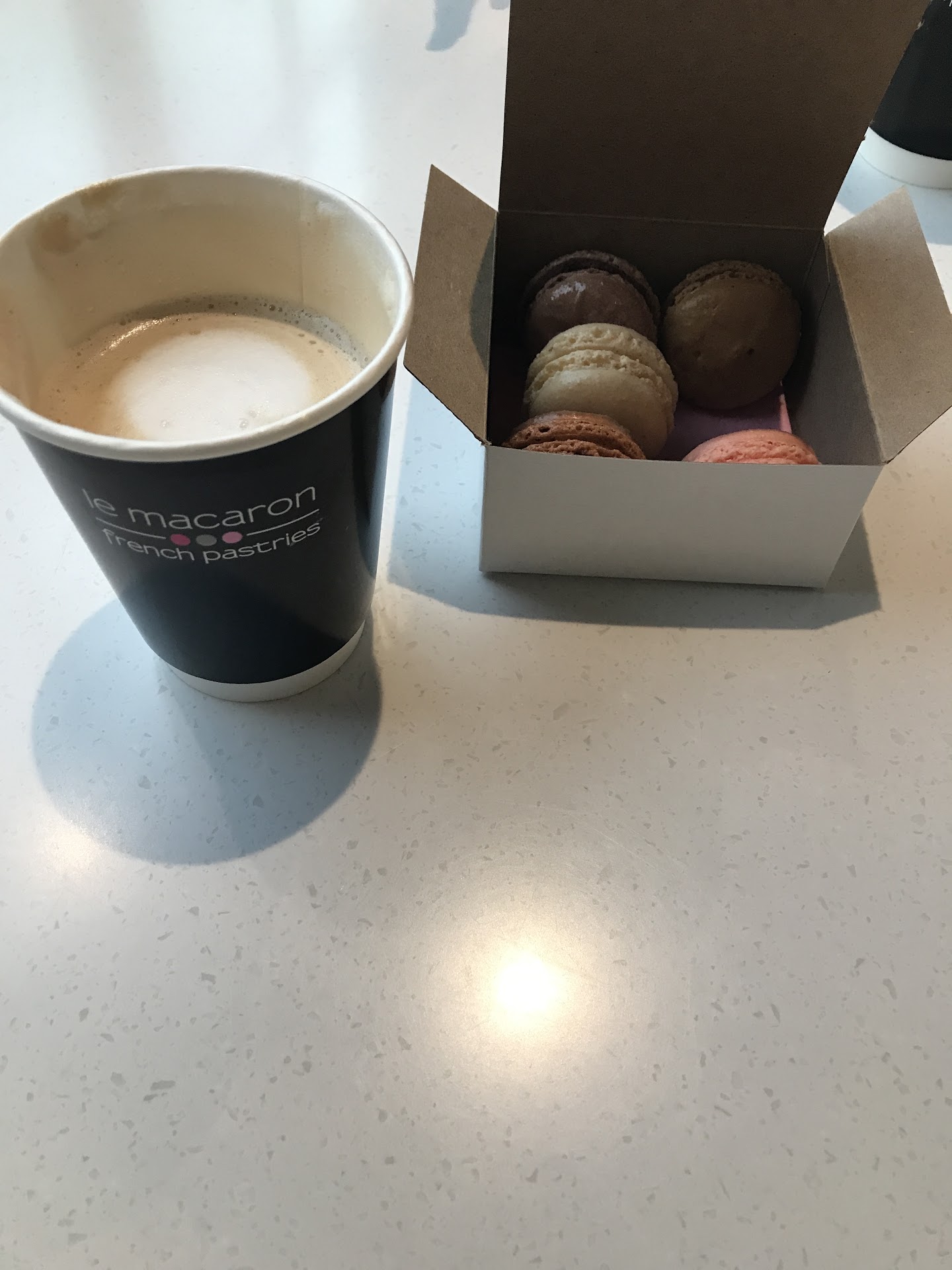 Read moreI think this spot’s been open for a few weeks at most. The renovation was well done and welcoming even from the street so I swung in to try it-- I got a cup of black drip coffee and a macaron to go. The coffee was smooth, flavorful and drinkable. I didn’t eat the macaron until I got home (pistachio flavor) and honest to god when I took a bite I had to stop everything I was doing and just marvel at the thing. It was perfect. Woah. Texture and flavor were flawless. They have a lot of flavors of macaron as well as other things like croissants and cakes, beautiful presentation, and several small tables within the store. It’s clean and well-lighted. Service was attentive and personable- the owner was there (sweet French guy) and helped me out. This is on my route and it might be my new stop! I’d love to see this little neighborhood spot succeed and definitely...
