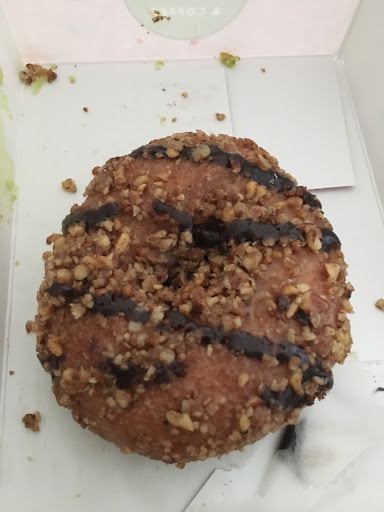 Went to this doughnut place because my granddaughters requested it. We ordered 6 donuts, a medium smoothie, a large iced latte and a large red velvet milkshake. The plusses: 5 of our six donuts were great. Carrot cake, coconut, biscotti banana and strawberry were all tasty! My granddaughter said her chocolate Nutella donut was dry. The mango smoothie was delicious per my granddaughter, and the ice latte was ok. Def nothing special. The red velvet shake was ok, however the entire reason my granddaughter ordered it was because it was advertised as having a very cute smiling marshmallow on top of the shake. Of course hers did not come with one. I did ask the server if she could get one and was told they weren't available. Granddaughter was upset and I was not happy that they were advertising showing a drink that looked nothing like the one we got. Also the drinks were very small. Larges were comparable to grande size at Starbucks.