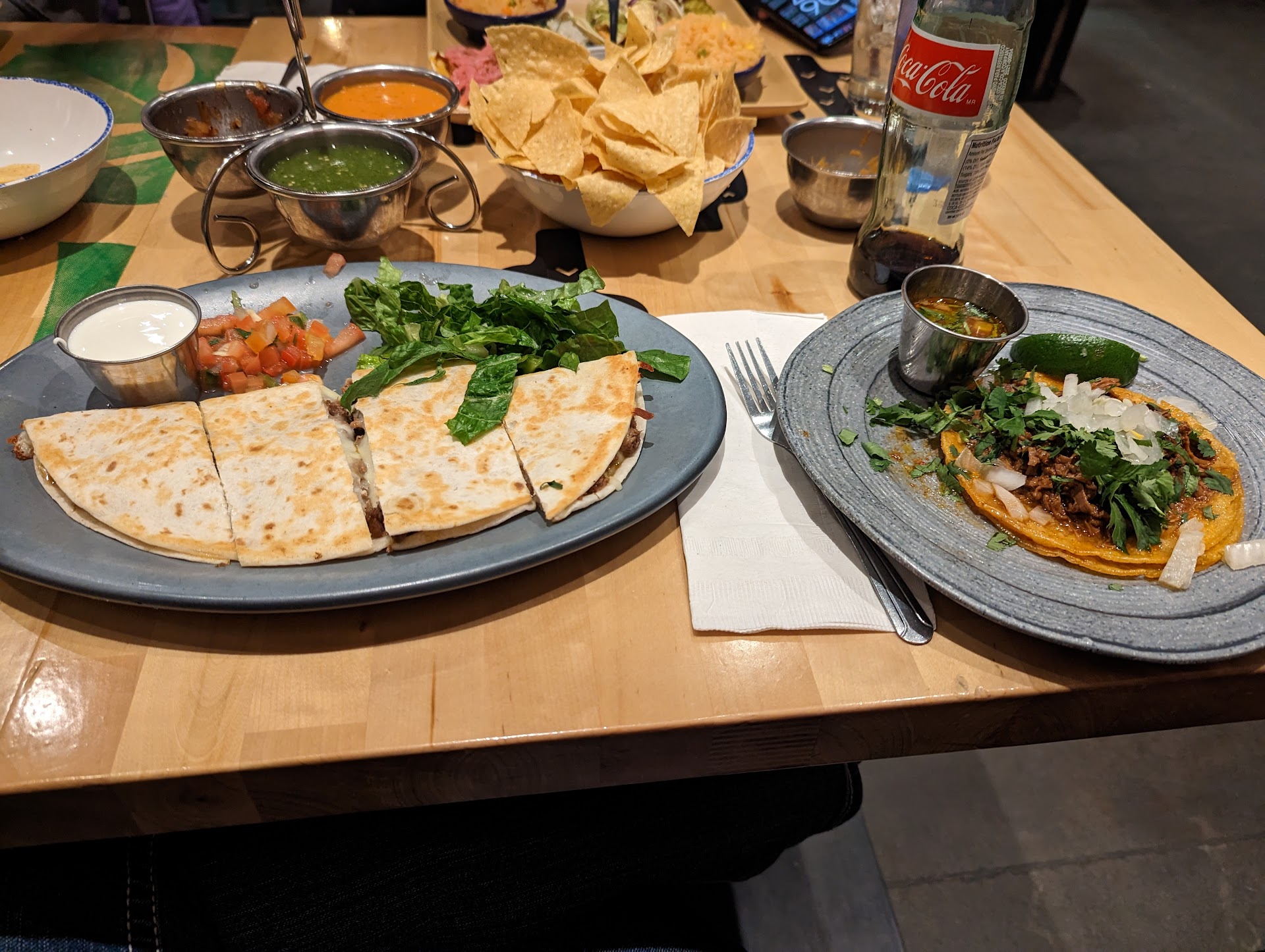 Read moreMan... I used to love this place. They have good vegetarian options which are labeled on the menu, and the food is always tasty. Unfortunately my most recent visit was not so pleasant. Last weekend I went with a friend for a late lunch and ordered some usual favorites, including queso. I've eaten primarily vegetarian for almost 20 years, but I'm pragmatic about it and tend not to make a fuss, just sticking to the veg options on the menu. But imagine my surprise when I had eaten about half of my bowl of queso dip and found an enormous chunk of shredded pork in the bottom. It's not crazy to think that in a busy kitchen a hunk of pork might have fallen into the queso, but it's kind weird for no one to notice while ladeling it into the bowl. Still, it was kind of an ick factor, considering I'd never eat pork purposefully and I'd chosen my entire meal to avoid meat. I brought the situation to the attention of my server and she called the manager over right away. The manager asked if I would get sick from being exposed to meat, and I told her I probably wouldn't get sick but that I wasn't pleased with finding meat in a dish that was labeled as vegetarian. She apologized and... that was it. They didn't even offer to replace the dish. I had to flag down the server AGAIN and ask for a new bowl of queso. I didn't ask that they make a new "uncontaminated" batch of actually-vegetarian queso, I just wanted a fresh pour with no pork in it. When we got the bill they had comped our NA beverages, a total of $8. They didn't even remove the queso from the bill for the trouble. Which made me think that maybe I should have made more of a stink, I guess? I don't expect every restaurant to bend over backwards to accommodate all diets. But when you make a point on your menu to serve vegan and vegetarian dishes, and vegetarians dine there because they advertise those options, it would just be nice if they were... you know. Vegetarian. So, just a bummer of an experience.