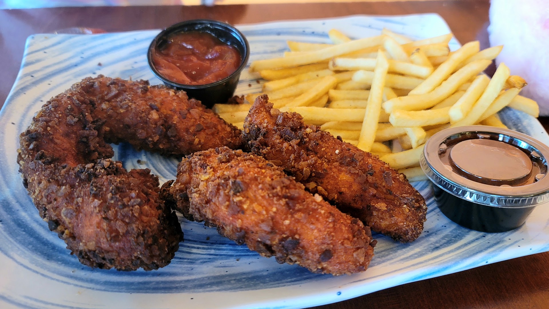 The Cubinatas Chicken Tenders were hefty, but a bit dry. The plaintain crust looked really promising but lacked any significant flavor.