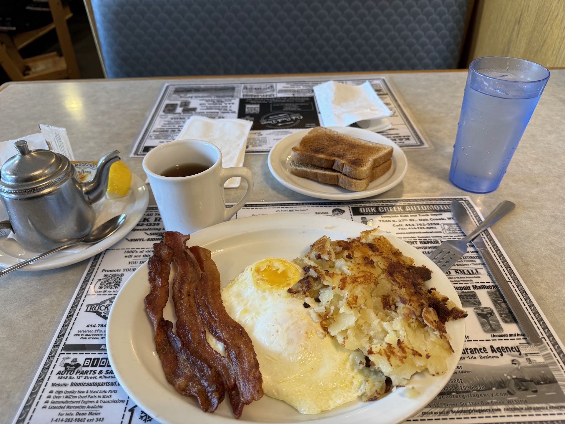 Ā Ā Ā Read moreI'm surprised at the reviews but maybe it's different when you dine in. I got my food to go I called in my order. First I was told 10 minutes and I was there at 11 minutes but somehow my omelette was lukewarm. I ordered toast that was not toasted at all. It's like they put it in the toaster for a few seconds. It was soggy like. Toast means toasted. The Omelette that I ordered was so very thin not like I've seen at other places. I ordered some veggies and sausage in there with cheese but the whole inside of The Omelette was full with so much cheese that it was hard to eat. Also, the cheese is not real cheese it's more like Kraft singles. Which is pretty disgusting. They charge you $15 for an omelette that is super super thin. Not worth the money. Then the hash browns that I paid an extra $3 for were burnt on top and complete mush in the middle. Again not good at all. I took one bite of the omelette, looked in the center seeing all the cheese was all the way through and didn't take another bite. The hash browns one bite, the toast one bite, and everything went in the trash. So I now get to work my 16-hour shift hungry. Again maybe dining in is better but I won't be back. Oh, and did I mention even though I ordered my food on the phone and picked it up I was still asked to leave a tip, which I did .That is getting to be ridiculous. I'm leaving a tip for you to hand me my food and the cook to do their job? Restaurants that actually have honor do not ask for a tip when you pick up your own food. Sad. $...