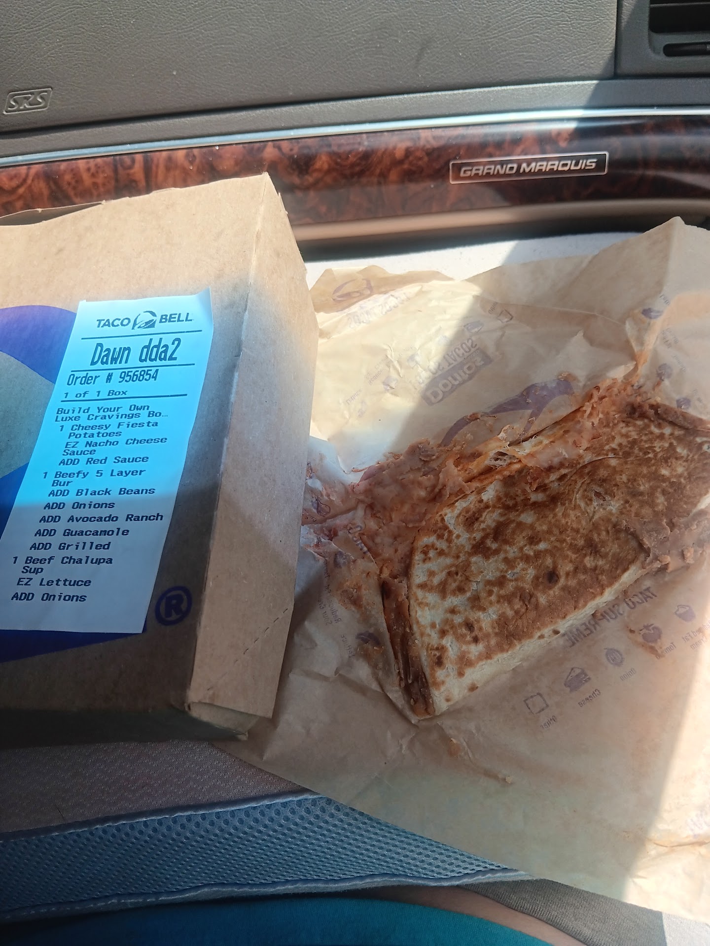 Ā Ā Ā Read moreI get it, it's Taco Bell, not a fine dining experience by any means. But when there is a consistent pattern of mistaken items, wrong ingredients, and "manager" attitude, it's time to cut your losses. I called each of my last 3 visits about an incorrectly made item (same thing each time with clear emphasis made on how I wanted it done, steak quesarito with no chipotle sauce). Not a difficult request.