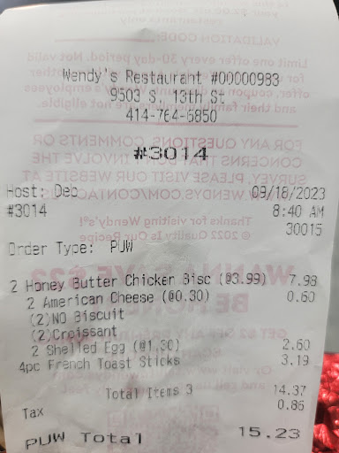 Read moreI was just in their Drive thru, this people were so rude at least tonight. I've been there before never had a problem, but tonight. I waited for about 15 min. In line with inly 2 cars before me. I was about to leave when it was my turn. I told them my order n i wanted a salad they didnt had avilable or something. The guy was rude but i discarded it (whatever). Then i asked how long my order would take (as they've been taking so long). And he says: as long as it takes to make the food. I said: thats not very specific. He says: well you dont have to eat here I said: what?? He said: you can leave..