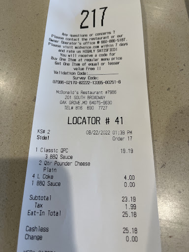Read moreOrder is always wrong not just once though I most of the time have to go through 3 times before my order is right. I've ordered a double quarter pounder that was supposed to add lettuce and tomatoes No Pickle No mustard, I received a single quarter pounder with pickles and lettuce no tomatoes No second patty I go back through they added the tomatoes left the pickles on and still didn't add the second patty, remind you this is during the rough covid stuff, so they are not supposed to be taking the food back I don't mind them taking it back its the fact that I had to go around yet again and I handed the same quarter pounder back to them they took off the pickles and put what looked like a chewed up patty on top of it all. I threw it away immediately, I was done trying to get my order right for 1 order, and them repeatedly taking the same quarter pounder back.