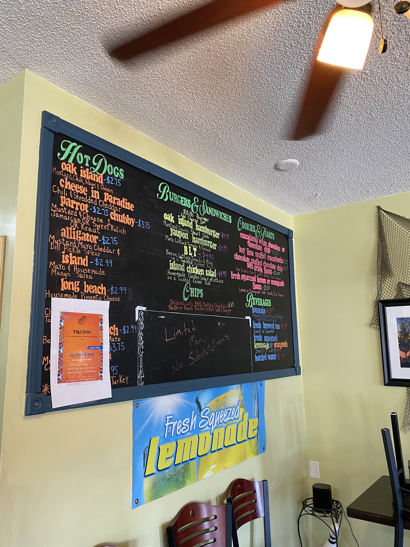 Read moreThis has always been my favorite place to eat at Oak Island. Today, though, my husband ran in and got us food to go. Out of 5 hot dogs, the only one that was correct was the footlong. We asked for turkey dogs for three, and none of those were correct. The one that was not supposed to be a turkey dog was the only one that was turkey. I don’t recommend taking the food to go because it was a mess in the bag and the pimento cheese dogs (my favorite) were upside down at the bottom of the bag. My husband went back in to let them know our order had been wrong, and the manager (?) said it was written down correct and didn’t care. Not sure if we’ll be back, but if we do return, we’ll dine in so that we can deal with issues...