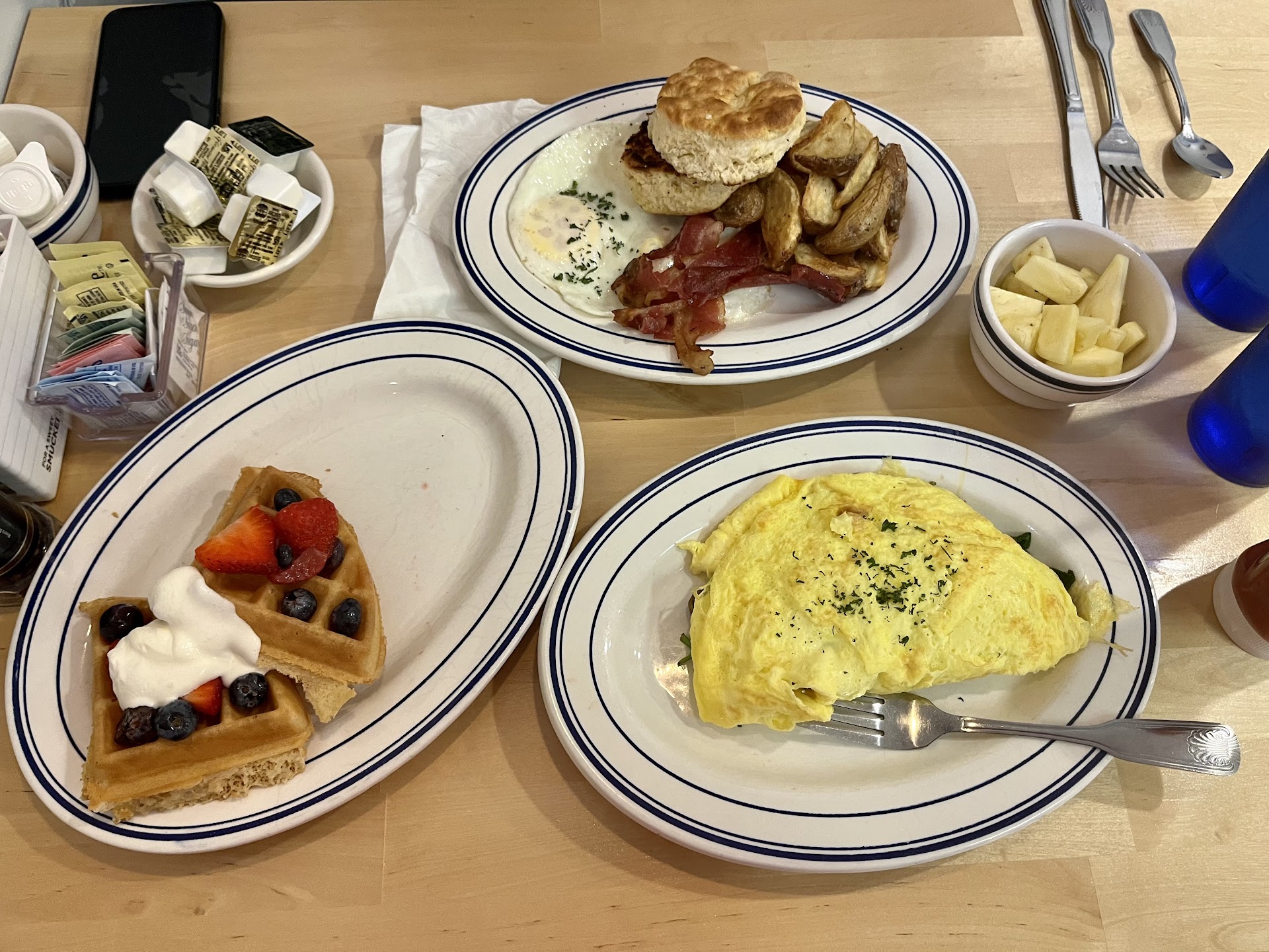 We ordered a breakfast platter w biscuit, eggs, grits and bacon, as well as the crispy chicken biscuit. Iâll start by mentioning that the staff was very kind and helpful, decent wait time for a Friday morning in June. However the food experience really disappointed me. Made me wish there was a Waffle House on the island because they make a much better southern breakfast. One biscuit was dry and hard while the one with the chicken was soft and totally crumbled when I picked it up. The eggs had no seasoning on them, not one item we ordered did. Sadly the gritsâŚ..were very watery and so bland. Huge bummer. Grits should be creamy, once youâre done cooking them itâs impossible to season them right, so making sure theyâre seasoned while preparing them is important. The âcrispyâ bacon was soaked in grease, limp and soggy. My chicken biscuit was clearly a frozen chicken filet, which is okay but it was low quality and a strange shape, again not seasoned. Finally our iced tea was very weak and pretty bitter. Itâs clear to me this restaurant is run and owned by northerners trying to capitalize off southern culture and truly failing. Will the masses of people traveling from the north and Midwest enjoy this food? Based on a lot of the reviews, Maybe. Will southerners who grew up eating this food enjoy Fixinâs? I really...
