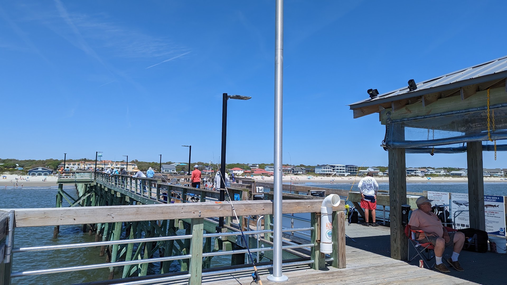Stopped for dinner at 7:00pm on a Tuesday evening. The wait was 45 minutes. We walked the pier with three children. Outdoor space for waiting had games; cornhole, etc. We stopped at the bar after our pier walk and I tried to order a beer for my husband and a drink for myself. The bartender would not sell me two drinks without seeing my husband in the flesh. (He was helping our 4yo use the restroom outside of the bar pier side). Once he showed himself, she allowed me to order a second beer. Then she told me I couldnât leave the bar with our drinks. (Strange because the only waiting area for our table was in front of the restaurant located just outside). I asked if my children could come inside at the bar as we were waiting on a table and the bartender replied yes. I waved my girls in and attempted to let them sit on a stool and the bartender barked at me that the kids were not allowed to sit at the bar and that they could stand instead. Thankfully our table was ready and we paid for our drink and left the bar area. As we were leaving the bar another bartender had told me I needed to pay for my drinks (we already had) and she began explaining why their liquor laws were so strict. I just walked away. I understand there are rules, but the original bartender was rude and not accommodating. Iâve never been to a restaurant bar while waiting on a table for food and been told I cannot buy more than one drink without proof that itâs for another person and that I canât take the drink to a place in the restaurant that is designated for waiting for your table. It also makes zero sense that my kids can stand at a bar, but they cannot sit down. They are 4, 8, and 14yo.