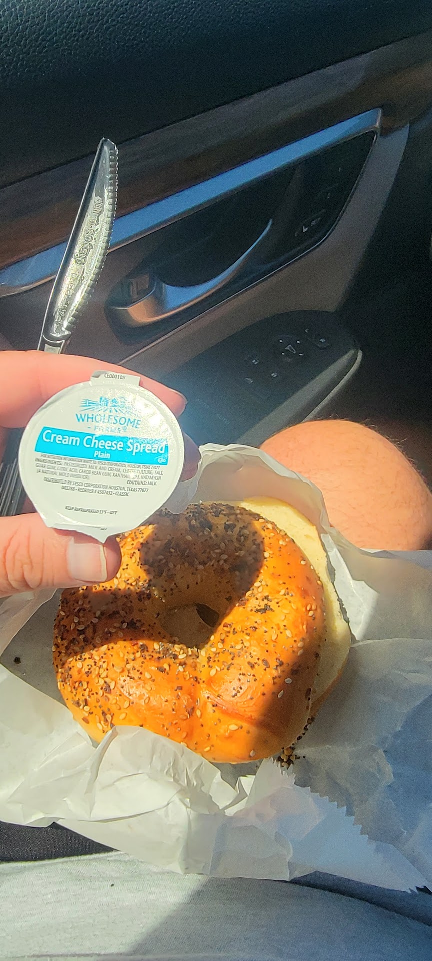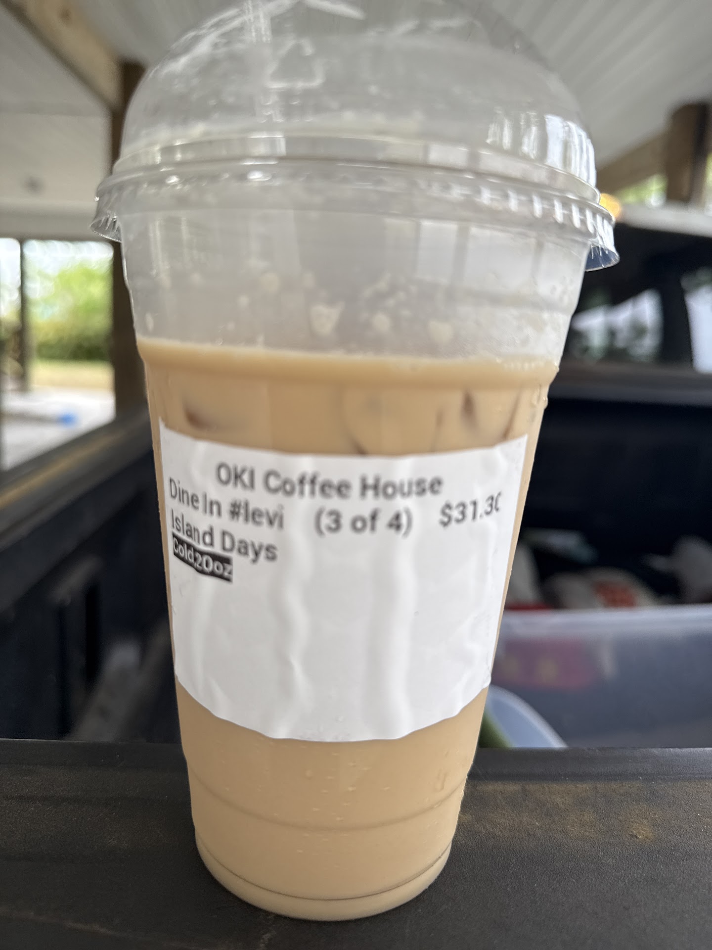 Read moreSecond time here. First time (last summer), my plain old drip coffee was lukewarm. So this summer I’d been going to Island Jo but their online ordering was down this morning and I have a bunch of my kids with me so I went to try OKI Coffee House again with an online order. I got there and it was a growing line of customers so I stood to the side assuming they’d call my name when my online order was ready or at least have something I could look at myself (receipts are on the bags). It wasn’t until after they went through the whole line of customers that I went up and asked if they’d gotten my online order. Yes, they did, and she got it from behind the wall. I don’t know how long it had been there but this setup is horrible for ordered placed ahead of time to AVOID the line. Plus, I was missing a knife for my cream cheese and the cream cheese is a measly container you can get from the store. Spare yourself the disappointment and go to Island Jo’s for a more quality food and coffee experience - esp when you’re paying upwards of $13 for a medium latte...