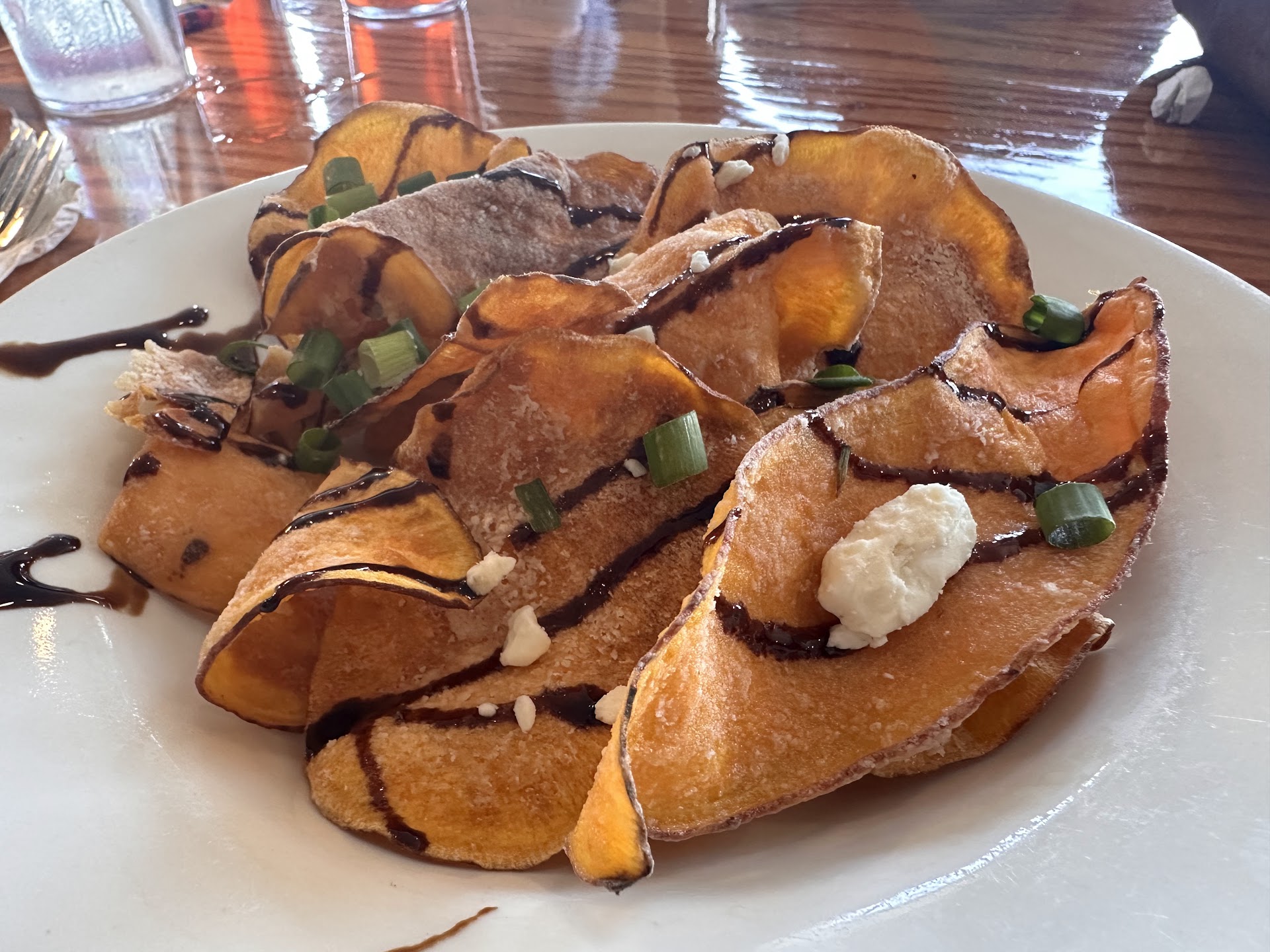 The environment: It is an outdoor bar with the garage door open. Expect it to be near the ambient temperature outside. There will be flies but the staff is quick to pick up used plates and there are spinning towers that also control the flies. They have 3 mobile units to cool/dehumidify the area. At 88 outside it was about 78 inside and while warm it was comfortable. The inside is nice and welcoming.
