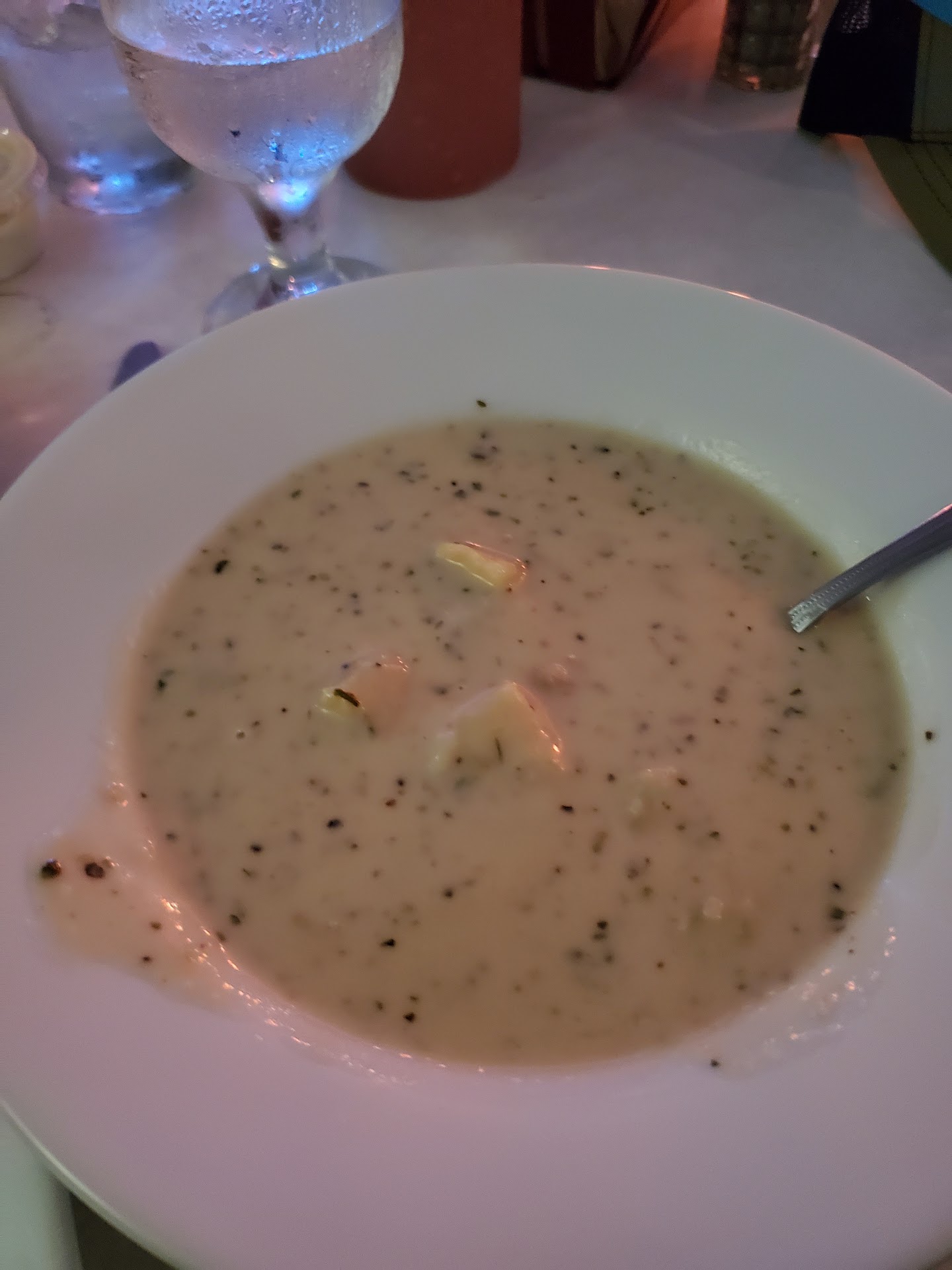 Read moreBased on a recommendation from my sister, took her and our family of 8 for a Saturday night dinner. Had a reservation and we were quickly sat (+). My comments: We were sat tightly in a round table in the corner. Tough to get up if you needed to use the bathroom (-) Very slow getting drinks from the bar. Would have been a lot quicker to get up and get the drinks myself directly from the bartender (-) Clam soup was so salty it was inedible (-) (two people had this) Hushpuppies, potato chips, fried shrimp were hard, dark brown/ overcooked or the frying oil needed to be changed (-). I orderd the meat platter - the filet and the lamb chop were "sampler" sizes. Ridiculously small. (-) Smallest lamb chop I have ever seen. Seafood linguine was amazing - super large portion that was filled with fish, shrimp, scallops. Enough to easily feed two people. Best meal at our table (+) (my sister ordered this). Everything else we ordered was just "average." 3 x apps - fried pickles, fish bites, crab dip. Entrees - grilled shrimp. salmon. Nobody raved about any of these dishes. Just good, nothing really that special. As we were leaving I told my sister my thoughts, she agreed that it was just ok and said "maybe they just had a bad night." I don't mind spending $400 for a family meal, but don't believe this meal warranted my expenditure - again, just an average meal that cost a lot more...
