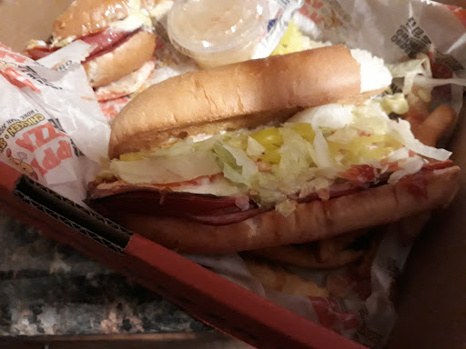 I was unaware that the subs weren't fresh until I arrived at home. Shame on me for not checking. Both the fries and the sandwich themselves were less than lukewarm. Fresh food would have undoubtedly been hot, or warm to say the least. I am very dissatisfied with Happy's. Between the cashier and the delivery man, neither one was aware that my food had been taken until it was too late? For my, overall, 45 minutes spent at Happy's for 3 items I was offered a simple 2 liter pop? I hardly think that's adequate.