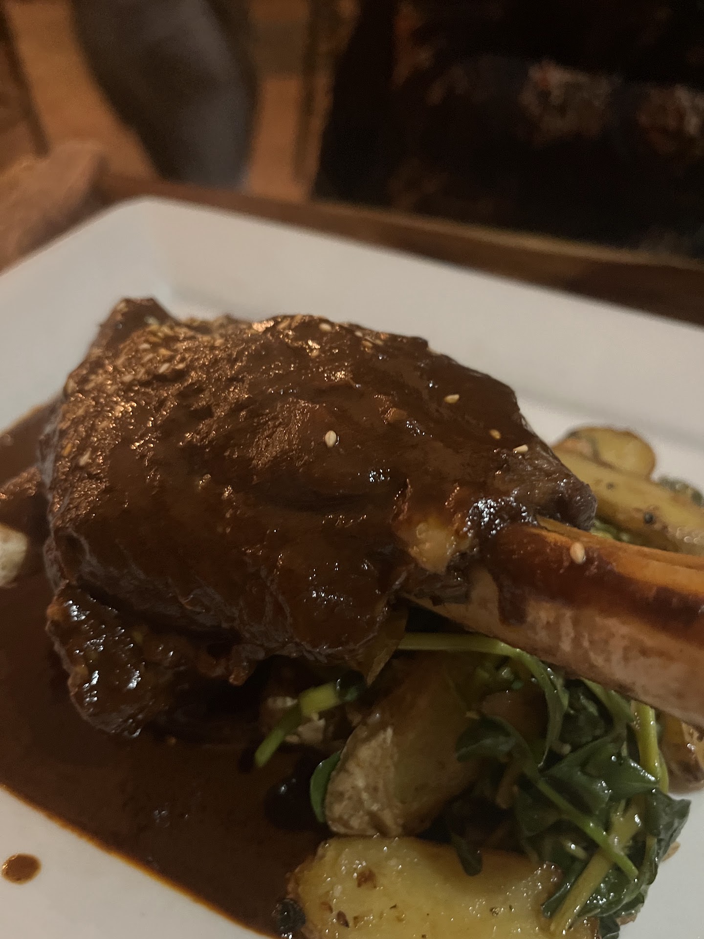 Starting with the Guacamole as an appetizer, I was already impressed by the freshness and flavor. However, it was the Lamb Shank that truly stole the show. Tender, succulent meat, perfectly complemented by a well-balanced sauce, accompanied by greens and potatoes that were cooked to perfection.