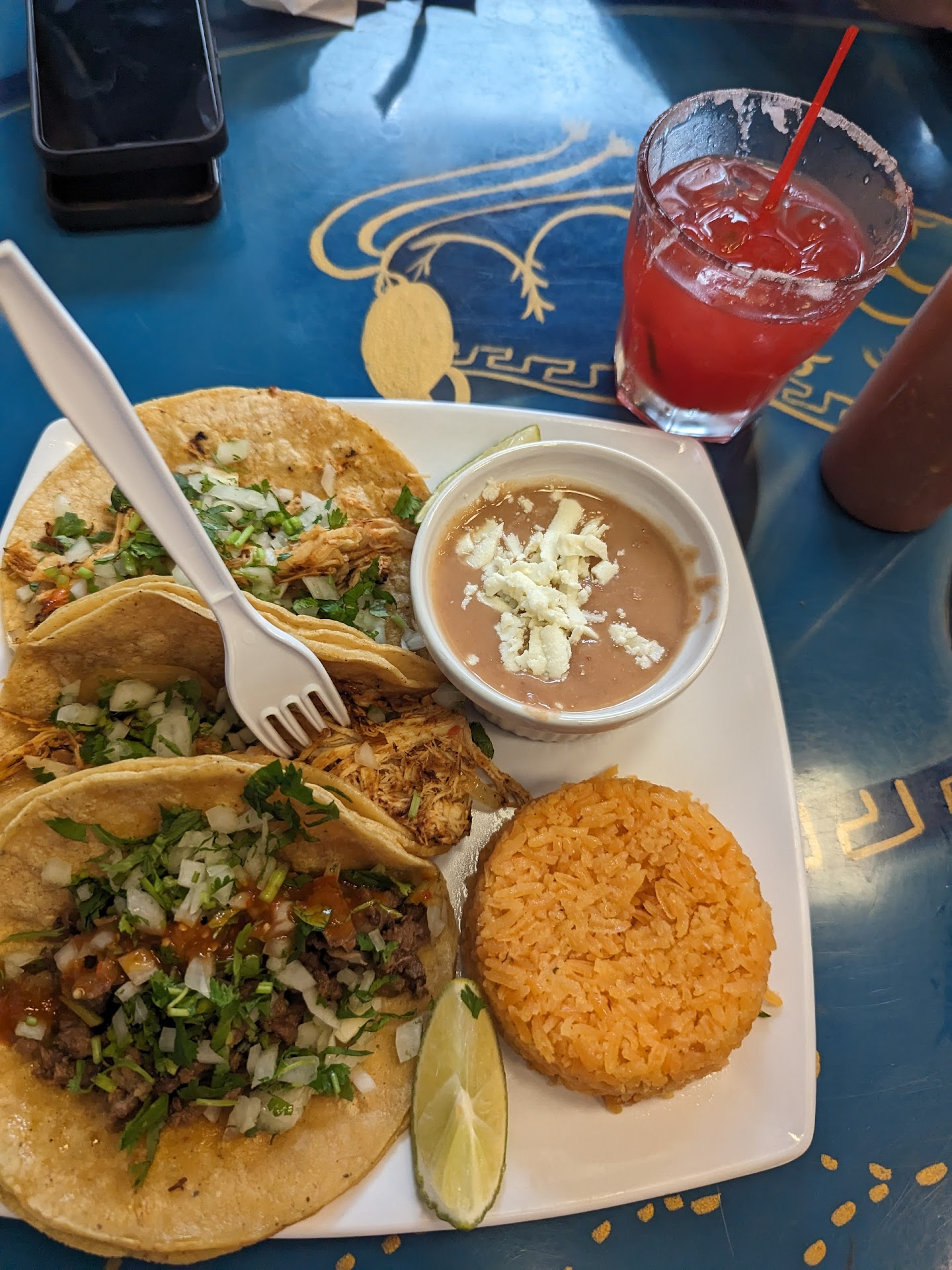 First visit: when the place first opened I decided to try it out with a friend, we order two taco dinners to go. They were ok no complaints seemed alright could have used a little more... idk salt?