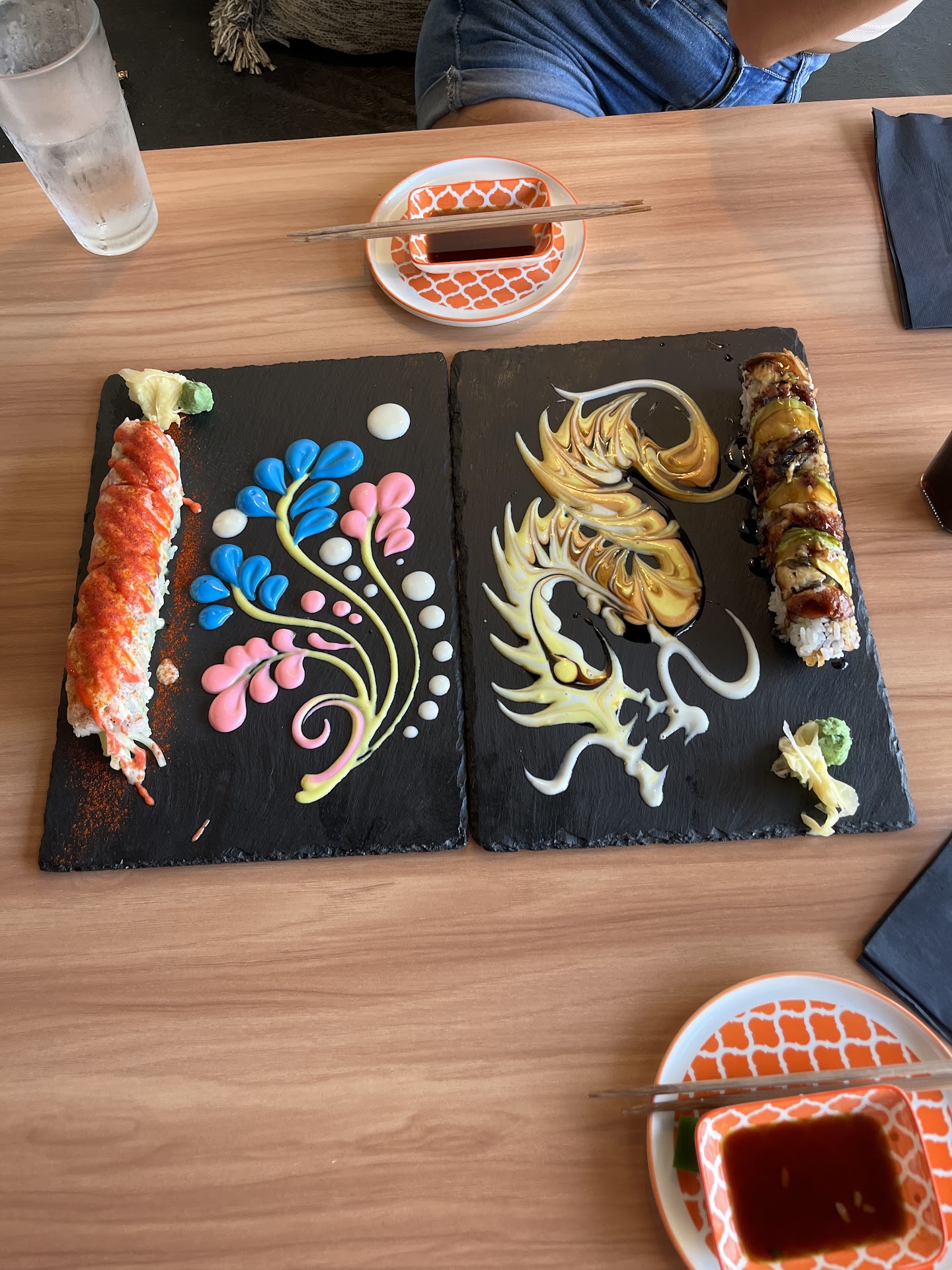 We came in, and it was about half full, which is a good sign. We got seated fairly quickly. The host was extremely nice. We took some time looking over the menu, and the host was kind enough to let us take our time choosing. The mango lemonade was very refreshing and had what tasted like fresh mango in it, which was a pleasant surprise as many use syrups instead. We ordered takoyaki to start and it was a strongly impressing starter item. Cooked perfectly, my only complaint is much too little octopus in it, which is the main star ingredient of takoyaki. Then came the spicy tonkatsu, very oily, noodles were definitely not house made. Very meh. Then the rolls and nigiri. The rolls and Nigeria are beautifully put together and the sauce art is definitely a plus. However we noticed the blue sauce stains the board and could see the stains from the previous use. And we also felt the sushi itself was quite bland. Fish when fresh has a wonderful unique flavor. These lacked it. However I was pleasantly surprised by the Wasabi under the fish on the Nigiri, which is a sign of a well taught sushi chef. Overall beautiful presentation, great service. A bit of a empty atmosphere with odd choiced pop music but my only qualm is with the quality of the ingredients. I don't think I'd pay $100 for this level of quality again when I could go somewhere I know is better. However, this spot is new and I think with time they can improve, and I will probably visit again in a year when they've hopefully improved. At that time I will...