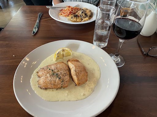 The food was very good, but a few things could be better. Salmon for her was cooked just right - but could have been seasoned and presented better with a side … somewhat plain for the almost $30 price. My chicken Marsala was also good - but a little short on the mushrooms and Marsala sauce. I especially liked the salad appetizer with house made maple walnuts, plenty of cranberries and just the right amount of dressing. The Tiramisu desert at the end came out cold and still mostly frozen … not the way it is meant to be.