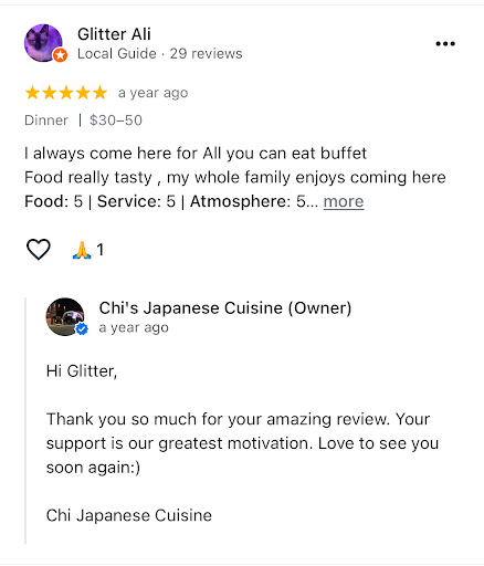 Chloe was so helpful in our culinary sampling ,thank you Chi Japanese Cuisine. ,. Returned. August 13 2017. Again for another try at the menu but was going to find a different place to try, My saw the sign an hinted let's go there again. Guess what we did Monica waited on us with this huge friendly smile. We were seated across from the prep bar an was able to watch sushi chef's with smiles working . If you haven't been here yet they have this all you can eat menu which has everything they make listed, you just select and they keep serving until you can't select any more. (Note) you can change to any item an they will keep bringing it. I've been able now to try 50'% of the menu. I can not find anything I would not try again. I have this thing to like or dislike a food sampling you need to try it 7 times. ,no problem I can't find anything I didn't like . I've added 17 more photos . Chatted with people at the next table ,it was their second time and they loved it. Well I am a huge fan an so is my wife and she doesn't like sushi . We are hooked. Enjoy the new photos