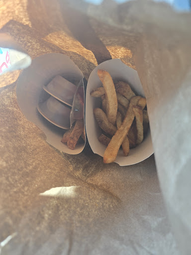 Paid an extra $7 for fries on 2 sandwich orders and not only was neither cup even halfway full, one cups had all sauce and ketchup. I throw the boogie buggy in reverse and am met at the window by 2 cherubs who seemed truly off guard when I asked where the rest of the fries. The one gave a very long "ummm" the said it's by weight.