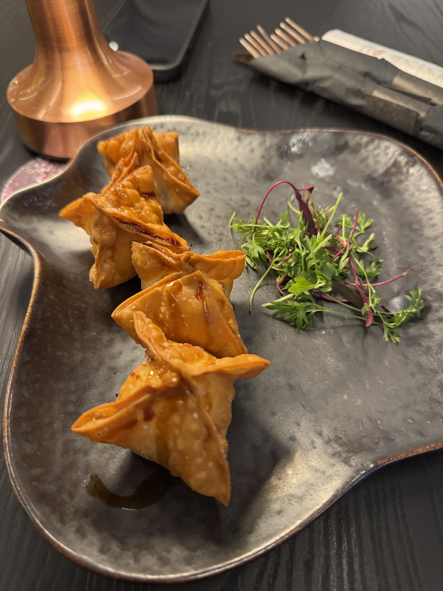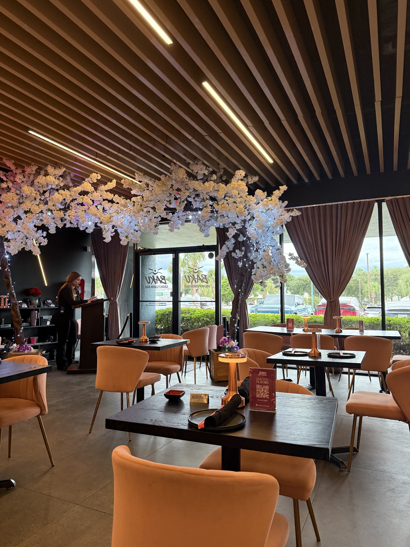 Environment This is located off OBT and right by the Florida Mall. There is a decent amount of parking space available outside and also under if needed. But the parking lot can get a little busy. The inside was beautifully decorated. There are a mix of tables and booth seating. There is also a DJ booth, the music was pretty prominent.