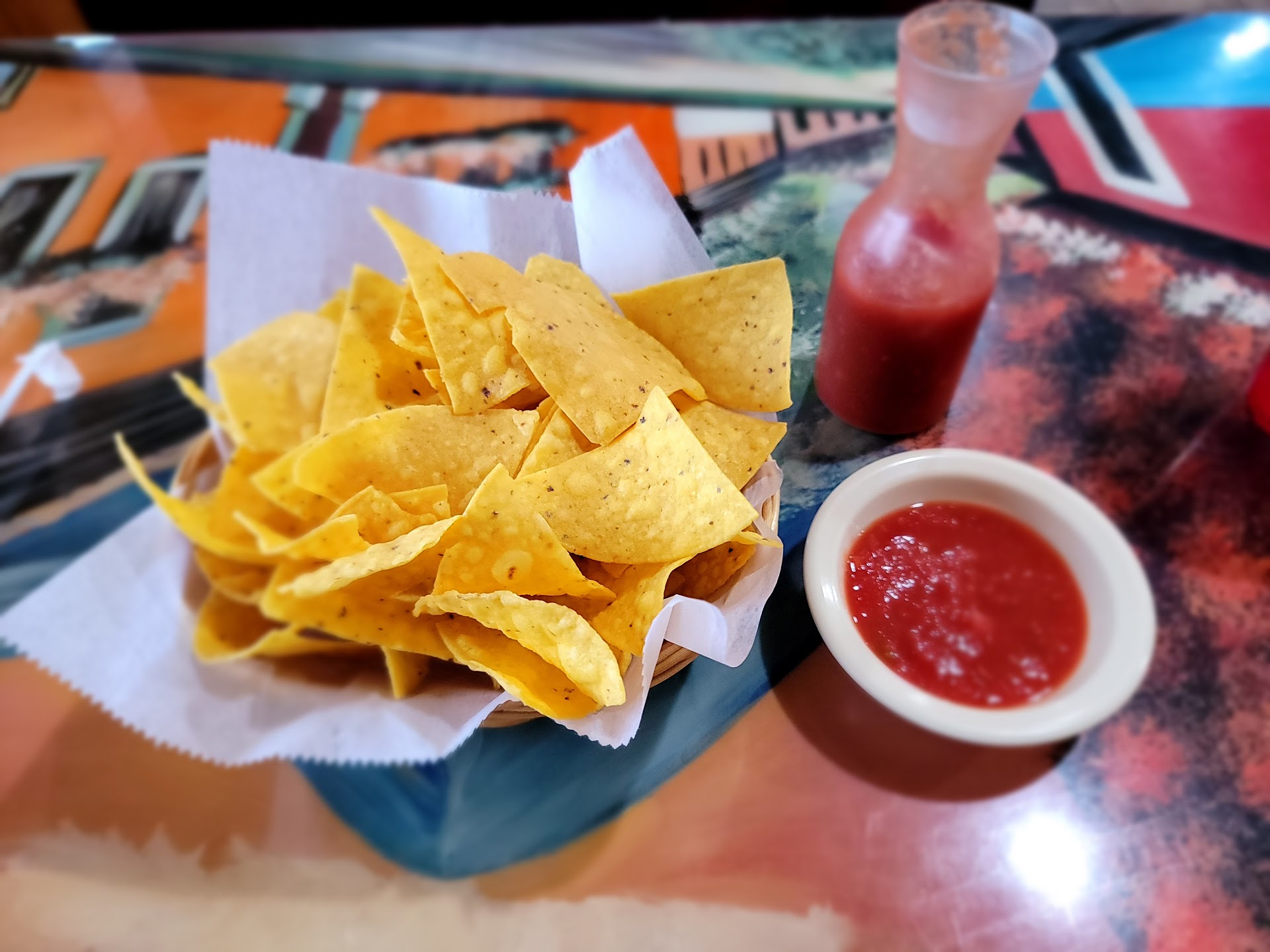 We arrived during lunch time it was somewhat busy. We were immediately greeted and seated at a booth. The meal comes with complementary chips and salsa. The salsa is not spicy but has a good flavor.
