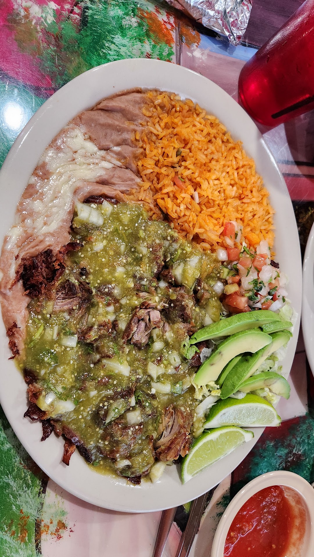 I asked the waiter about spicier salsas and sauces. He did bring out a green Chile Verde which was not spicy but tasted okay and also a red Barria sauce that had some spice and what seemed to be cabbage. I appreciated most our waiters patient demeanor and willingness to accommodate.