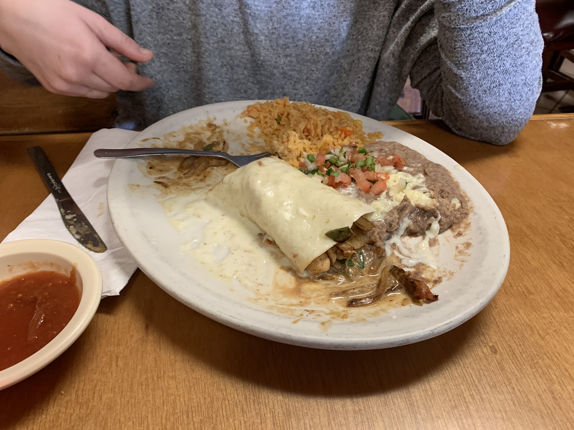 I rarely bother to write reviews but in this case I felt compelled to explain why I left only a $2 tip. I've been a waitress/server many times over the years and I understand what a grueling job it can be. I am sensitive to the struggle. I went to eat with my son at the Oak Ridge location on his recommendation, as he had eaten there with friends once. I was looking forward to a good meal. We were both severely disappointed for multiple reasons... The food: I'll start with the positive. The portions were very generous. The sweet tea was delicious. But, there was little flavor or spices so it was all very bland. The guacamole seemed like just smashed avocado. The refried beans were flavorless. The queso "dip" was practically milk. The chicken inside of the burrito and enchiladas were not really shredded but in very large chunks I had to cut to eat. The Sopapilla had 1/2 spoon of whipped cream, barely enough for a bite or two. The service: He was pleasant, neat in appearance and took and delivered our order quickly. However, once he dropped the food, he disappeared for the duration of our meal. We sat with empty drink cups once our first glass was gone. It was unpleasant to eat a meal with nothing to drink. He didn't check back to see if we needed anything or if the food was ok. He didn't clear our plates, even when we ordered dessert. (Still no drink refill). We shuffled dirty plates around the table as needed. He didn't even interact when he brought the check; he just dropped it and walked away. I'll add that the bill was reasonable for the amount of food we received, albeit bland. I am normally an 18-20% tipper, but with the entire experience, I didn't feel it was even close to being earned. I also don't believe in "stiffing" servers bc you never know what someone is going through. I didn't write this review to trash anyone or the business. I write it so that the issues can be addressed and hopefully prevent this from happening again because at this point, I'm not interested in returning to this restaurant. I honestly hope this helps, but I'm not optimistic considering the other negative reviews with the SAME complaints going back multiple years. The owner doesn't seem to...