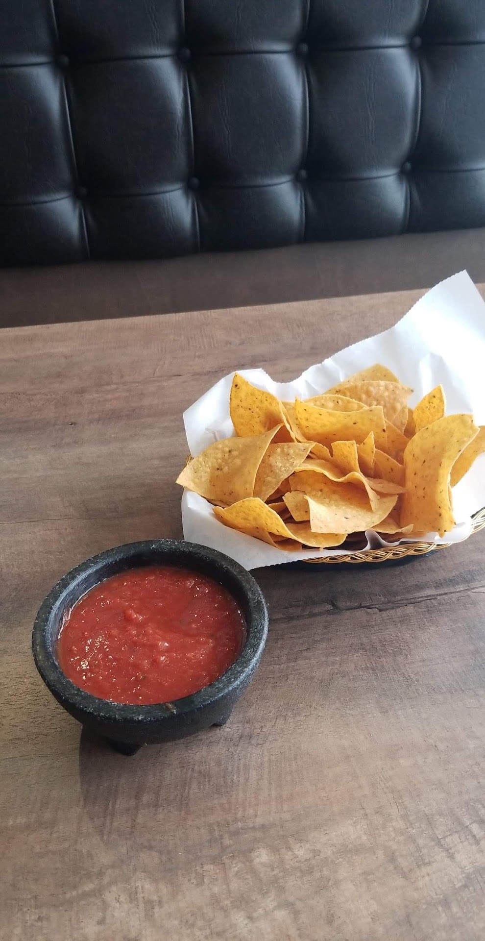 After reading all the glowing reviews here and on Facebook, plus seeing a full parking lot every time we passed by, we decided to give them a try. We went in around 6:30-7:00 pm on a Friday evening. Restaurant was busy, but we were able to be seated promptly. The atmosphere is very pleasant, but the lighting made it almost impossible to read the menu, I ended up using the glow from my cell phone to see the menu. Since it was fairly early on a weekend night, we expected everything to be "on point", and were extremely disappointed. Our beverage order was taken very quickly and we received our beverages and the complimentary chips and salsa. The chips must have been taken directly from a bag because instead of the fresh hot chips you get at other restaurants, these were cold. The salsa was mediocre. We both ordered chicken enchilada dishes, mine was served with a verde salsa, guacamole salad, and refried beans. Hubby got a ranchero sauce and he requested a double order of refried beans. Unfortunately, the guacamole salad was the highlight of the meal. Both sauces tasted "off", the beans were mediocre, and the chicken in the enchiladas appeared to have been cooked several hours earlier, it was dry and hard on the edges.