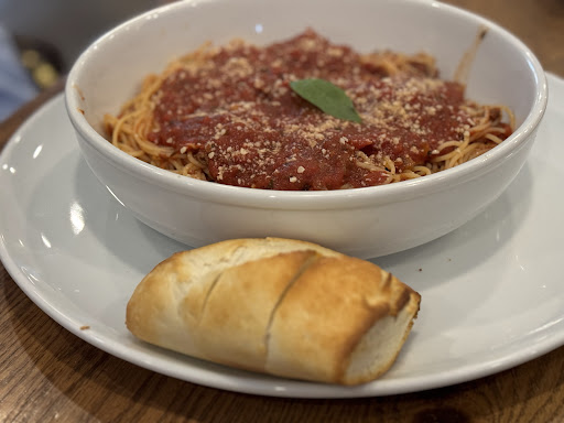 My wife ordered the spaghetti with meat sauce. The sauce had a nice flavor to it, but the texture of the meat was a bit off. It didn’t seem like it had been cooked down in the sauce; instead, it felt more like pre-cooked meatballs that were broken up and added in at the end. Not the worst, but not as cohesive or tender as we’d hoped.
