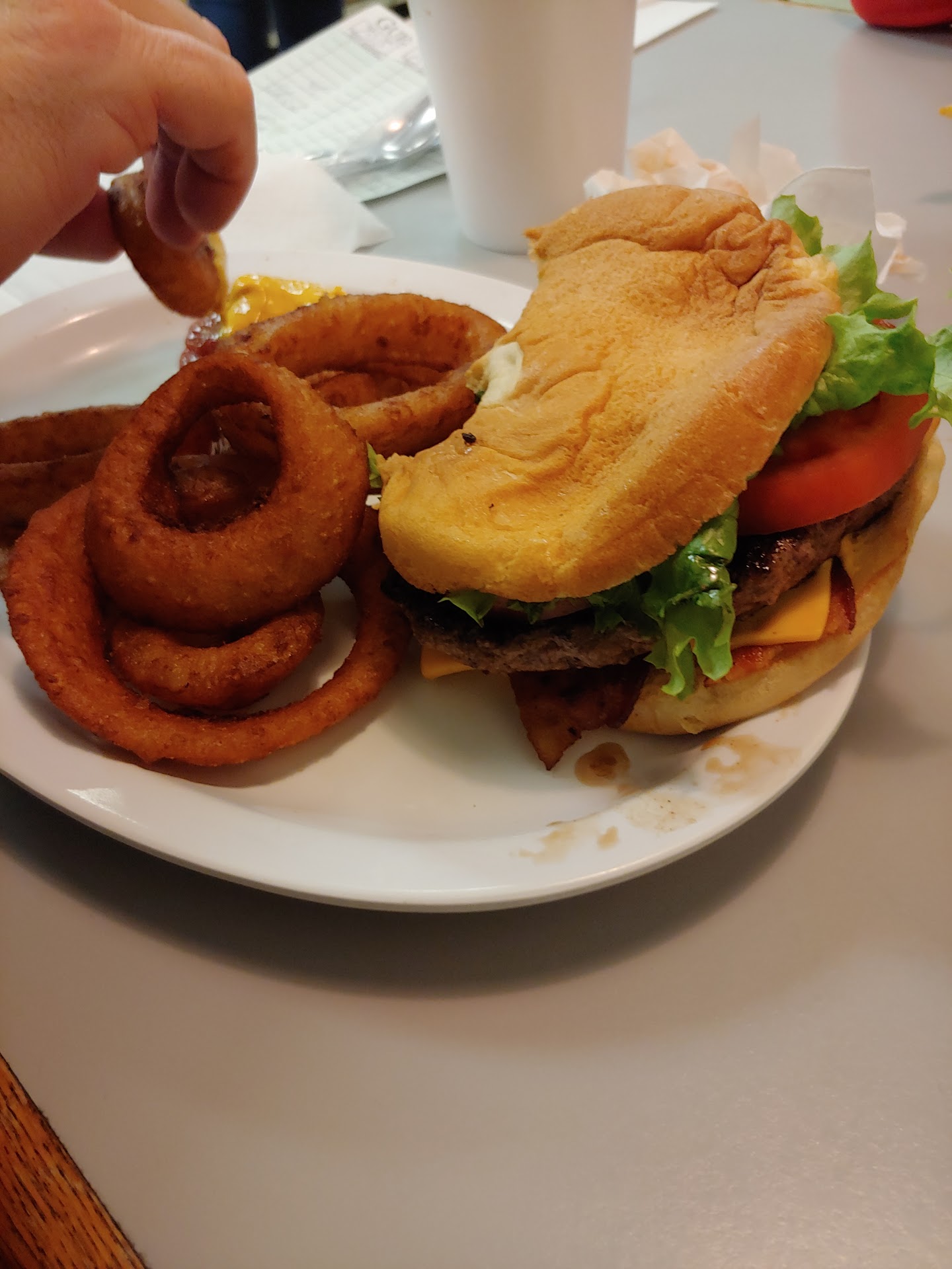 Read moreFood was excellent and service was fast and friendly but something odd happened. We ordered burgers and onion rings on a recommendation from friends and we had driven twenty miles, one way, to try this particular meal. Our server said, "I'm sorry but we don't serve onion rings on Saturdays. Would you like fries?" I found that sooo peculiar... and arbitrary but I agreed to fries and waited for my food. While eating an excellent burger and very good fries, a couple in the booth behind ours ordered burgers with onion rings. Their server (a different server) wrote his order down and walked away. I continued eating, expecting his server back any minute to tell him that, as is their practice, he would not be having onion rings with his burger since it was Saturday. Is Saturday a Latin word for 'serve no deep-fried onions'? I kept eating, anticipating his disappointment when he got the bad news, then there she came, as I felt certain she would, carrying a lovely plate with a big burger and a mound of crunchy onion rings. 😐😑🫤 WTH? Is there a secret password I'm unaware of? I'll go back because the breakfast menu looks yummy but I'll have my eyes on...