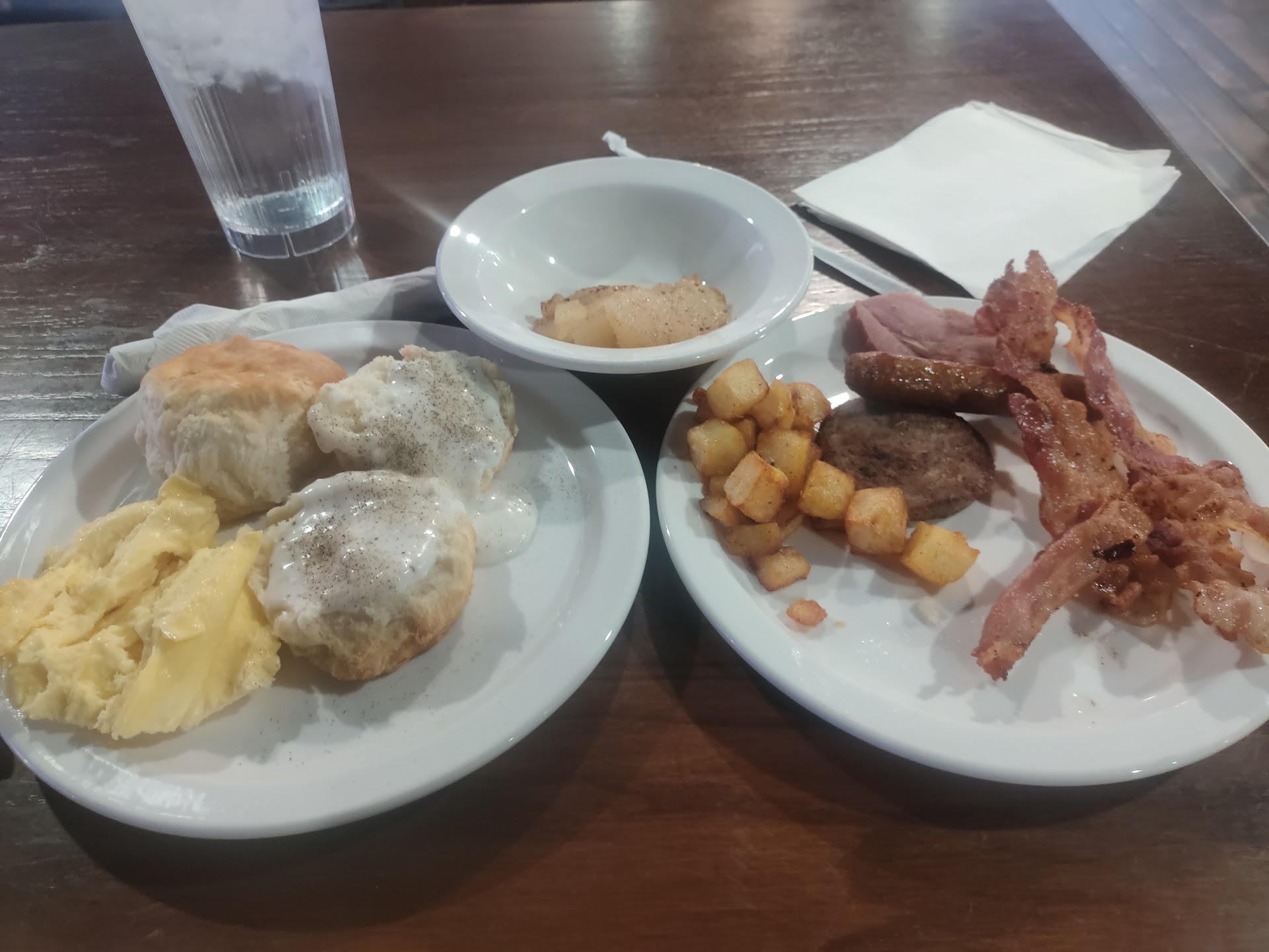 INITIAL REVIEW: My first visit after the remodel. And may be my last. If you like eating in a school lunchroom, you will enjoy this shoney's. Having a quiet conversation will require extra effort. Almost all tables and FEW booths. And NO SERVICE. I am shown to a table opposite the main door to the kitchen. I sit there for several minutes watching table servers stand in the kitchen entrance and look in my direction and appear to be discussing me. After 5 minutes one comes over and takes my order (sr.buffet & sweet tea). I go to the buffet and return to no tea. I'm half-way through soup when a hostess comes by and ask how I'm doing. I tell her I've been waiting 10 minutes for tea. She goes and gets it. Then my original table server comes by all nice and ignorant. During my entire meal I am never offered a tea refill (even though the original server passed by several times with a pitcher). The manager did comp my dinner after complaining. Next time I'm back to Clinton or Harriman or Knoxville. These offer quiet and very friendly dining for...