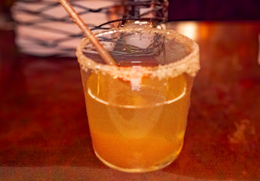The Peach Cobbler Moonshine was one of the best moonshines I have had. It tasted like a peach dessert and the slice of peach at the bottom of the beverage was a treat.