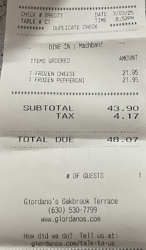 Our experience with the restaurant was outstanding. This was our first “Rehearsal Dinner” experience. We spoke with Tiffany the Banquet Manager, and she took her time walking us through all of the options. Her calm and assuring demeanor helped reduce our stress of hosting the event. They could offer us a private area and a wide selection of pizza and beverages. Now if you are from the area you already know that Giordano’s is one of the best pizzas in the area. But what really makes Giordano’s of Oakbrook stand out is the service. The entire staff were amazing. They were able to handle last minute additions to our headcount with ease. Pizzas were delivered hot along with a fresh salad and cold beverages. The staff monitored everything so we never ran out of anything. We can not say enough about Tiffany and the great staff at the Giordano’s of Oakbrook. Thanks again for making our...
