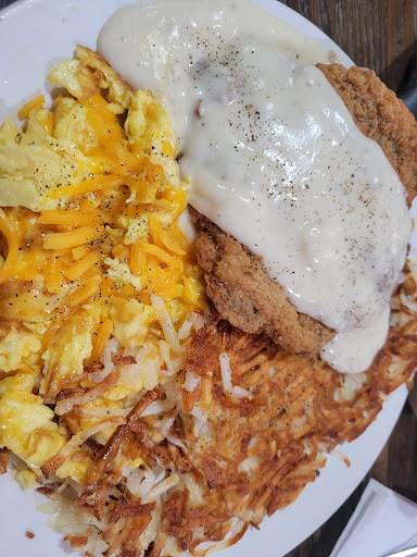 I would give this 5 stars for the fast friendly service and variety, clean bathrooms, and spacious seating,, but the food itself was a little blah (probably my least interesting chicken fried steak dish out of my past three road trips). It's hard to rate a restaurant and not...