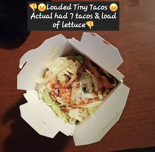 Windshadow's Review Let me say, if I request for the bread to be Grilled on my Sourdough Jack like they used to, 2 out of 3 times the drive-thru person takes my order & I get a great Sourdough Jack....the other times, the window agent gives me a hassle before turning in my order.( they insist its grilled no it is put in the toaster oven dry. Not buttered & done on the grill.) The new dry toasted version is plain & tastes terrible!! On to the time I ordered mini- tacos for my grandson... Many times The drive-thru wait can be a long, up to 12 minutes till orders done. 2 of 3 times they don't give napkins, or utensils for items you can't eat with your fingers, or put sauce on my 2 for $1+ tacos order( always I order no sauce), A few weeks ago, I ordered "Loaded Tiny 🌮Tacos", ( via the app), at night / diningroom closed, and still waited thru 7 cars & was in line a good 14 to 15 minutes. We got home & upon opening the Loaded Tiny 🌮Tacos, I was shocked the tacos only took up 2 inches in the bottom of the tall box! They looked like a flattened mess. I drove back to the drive-thru and waited another 10 minutes to get to the window only to have the woman at the drive-thru tell me... That's what "Loaded Tiny🌮 Tacos" looks like. The sauce makes them soft, and they sink to the bottom ( I don't know about you, but my regular " Tiny Tacos" fill up the box. There was seriously little tacos, sauced or not, in the bottom 3rd of my box. I showed & politely asked the window person to them when an older lady ( 40+) stepped up & and said, I'm the manager," then proceeded to tell me off like a kid..." You need to pick up your food when it says it's ready, you wait an hour & that's what you get...get here sooner next time!"( I waited 14min.thru a long line of cars, my fault¿¿?? Look at the picture & you tell me if this is... 🤔What the "loaded tiny tacos " picture on the menu looks like... reguardless... With the inside closed, they should wait until you get to the speaker when they are super busy w cars around the building to make food that will not be presentable if it sits long.. it's only good common sense! & still you don't get nasty with a customer who's being polite &