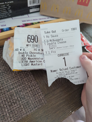 Read moreThis was the worst drive through experience ever! From the moment we got to the speaker-the young lady was impatient, kept interrupting us asking "is that it?". Got to the window where she was taking our money, no "hello", "thank you", nothing- she handed us our card back, shut the window and went back to her phone. At the next window we were told to pull up to #1. There was a car there and we parked behind them. Another vehicle started honking and yelling at us, not McDonald's fault, but the #1 slot is off to the side of the drive through and because there isn't room to pull over, the guy behind us couldn't get through and we weren't able to move because of the car in front of us, which started a screaming match between the three of us. Finally the car in front of us got their food and we pulled up. We waited for almost 20 minutes before the gal finally came out with a bag of food. She asked us if we had 2 big macs and we said no. She stood there looking at us like we were supposed to fix it. Then we grabbed the bag, looked inside and it was our food- she just didn't look apparently. We dont eat at McDonald's often, but will not be going back to this location for sure. Staff was rude, impatient and not helpful at all. And the drive through waiting area needs to be...