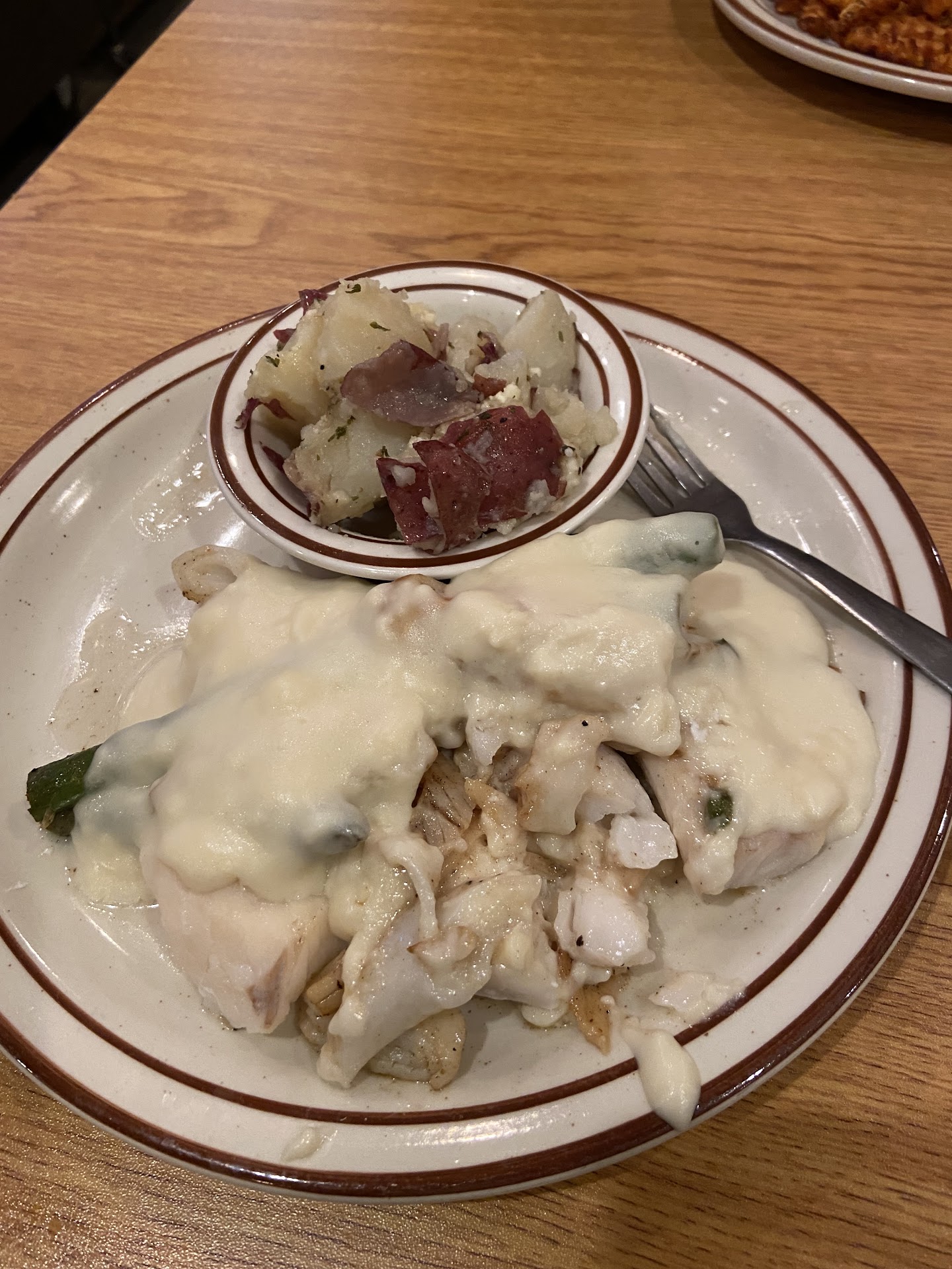 It being Saturday night we had Wisconsin’s greatest hits available - fish fry, broasted chicken, prime rib. So many potato choices. A small but clever hack of putting the butter pats inside the baked potato so the butter melts right on it. There was something for everyone, even one ice cream sundae made it to the table.